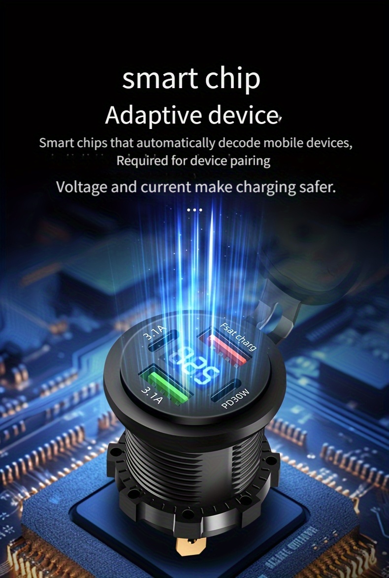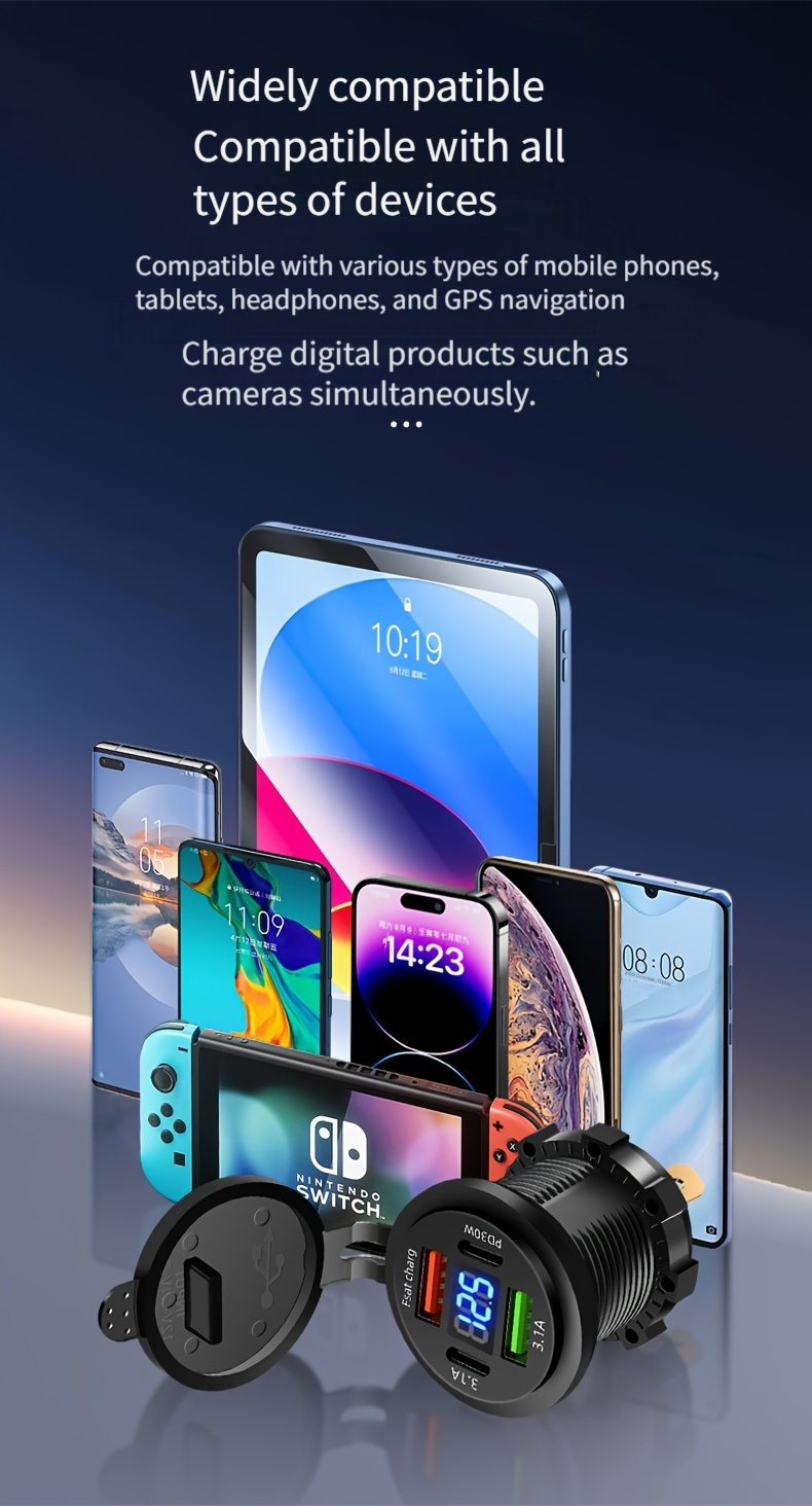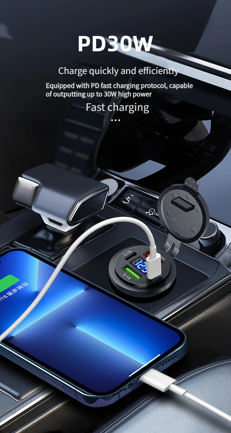 120W 12-24V 4-in-1 USB PD Car Power Socket with Digital Display