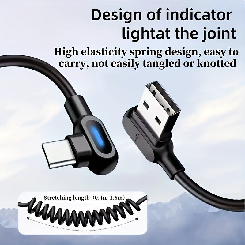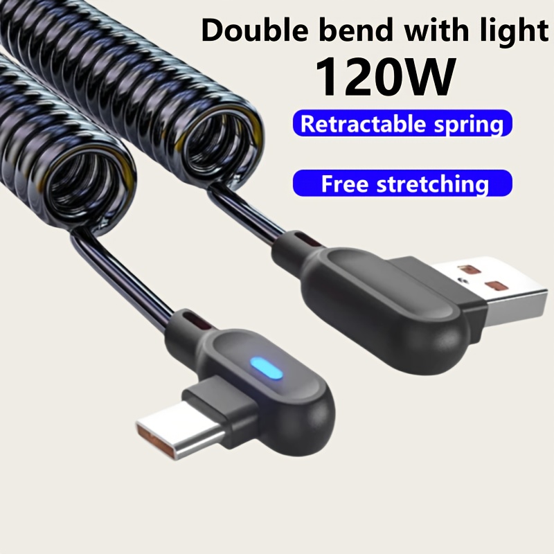 120W Fast Charging Coiled Type-C Car Charger Cable with 90 Degree Elbow Design