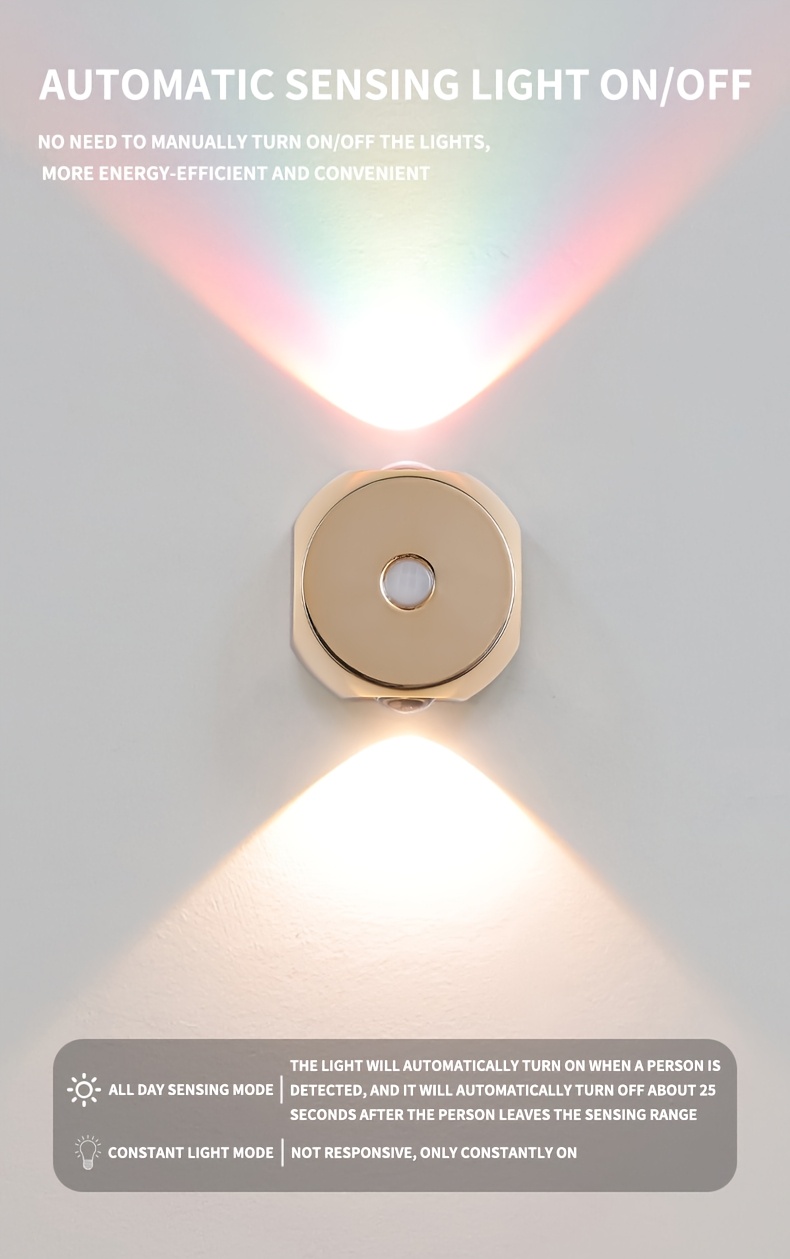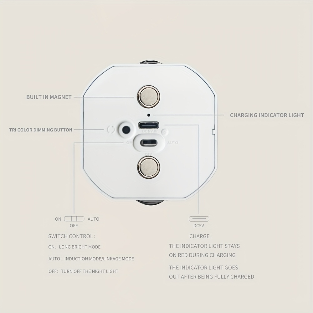 1pc Motion Sensor Light with USB Charging and Adjustable Brightness and Color