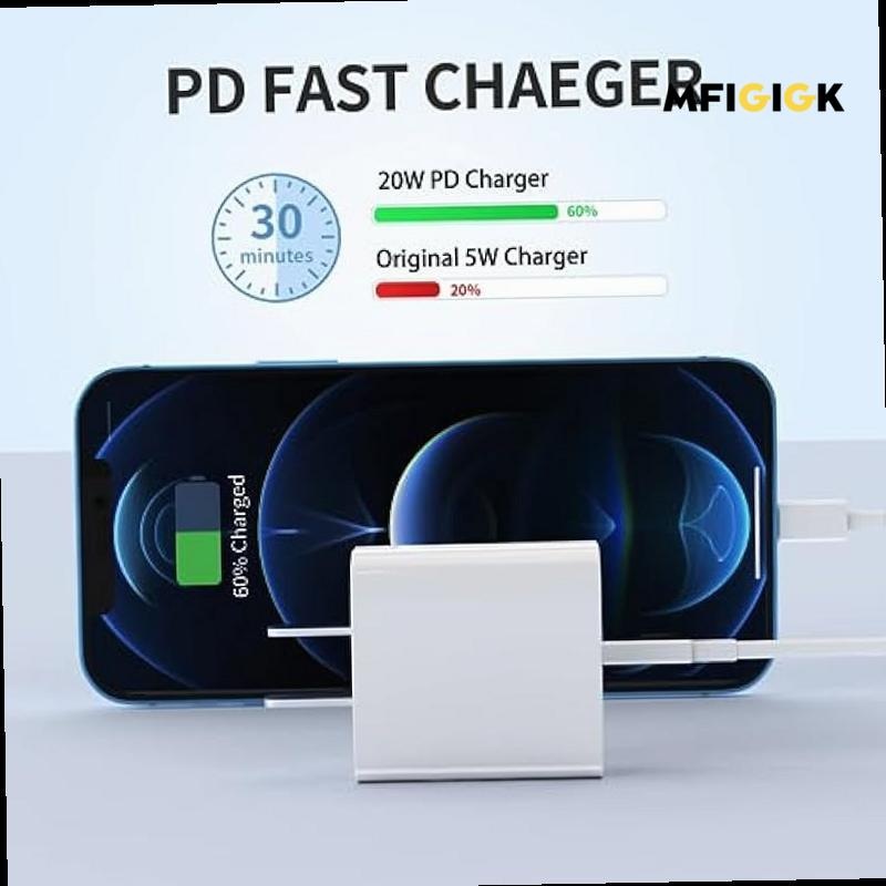 2-Pack 20W USB-C Fast Wall Charger with Extra Long Cable