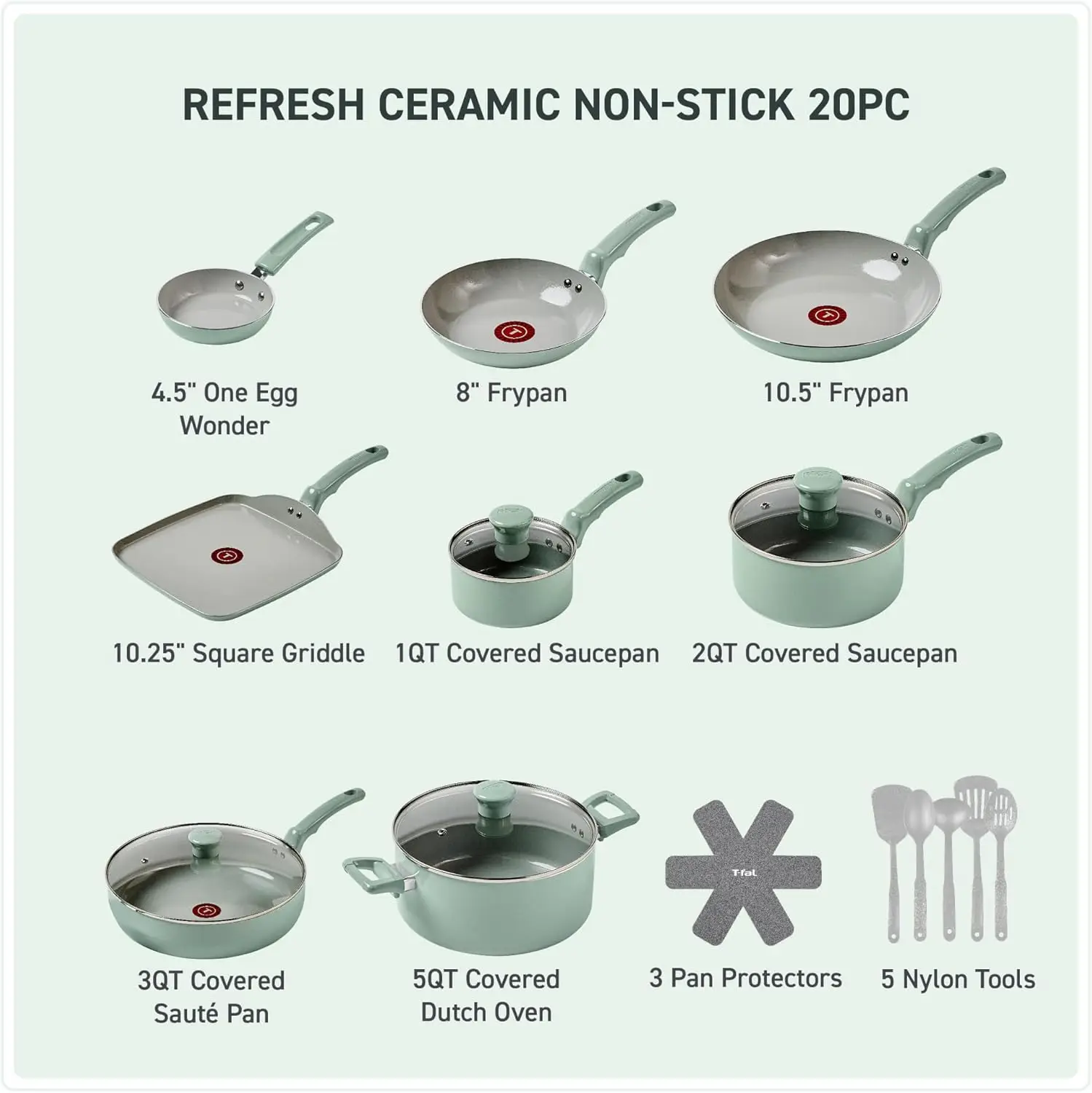 20-Piece Ceramic Nonstick Cookware Set in Mint Green, Oven Safe to 350°F