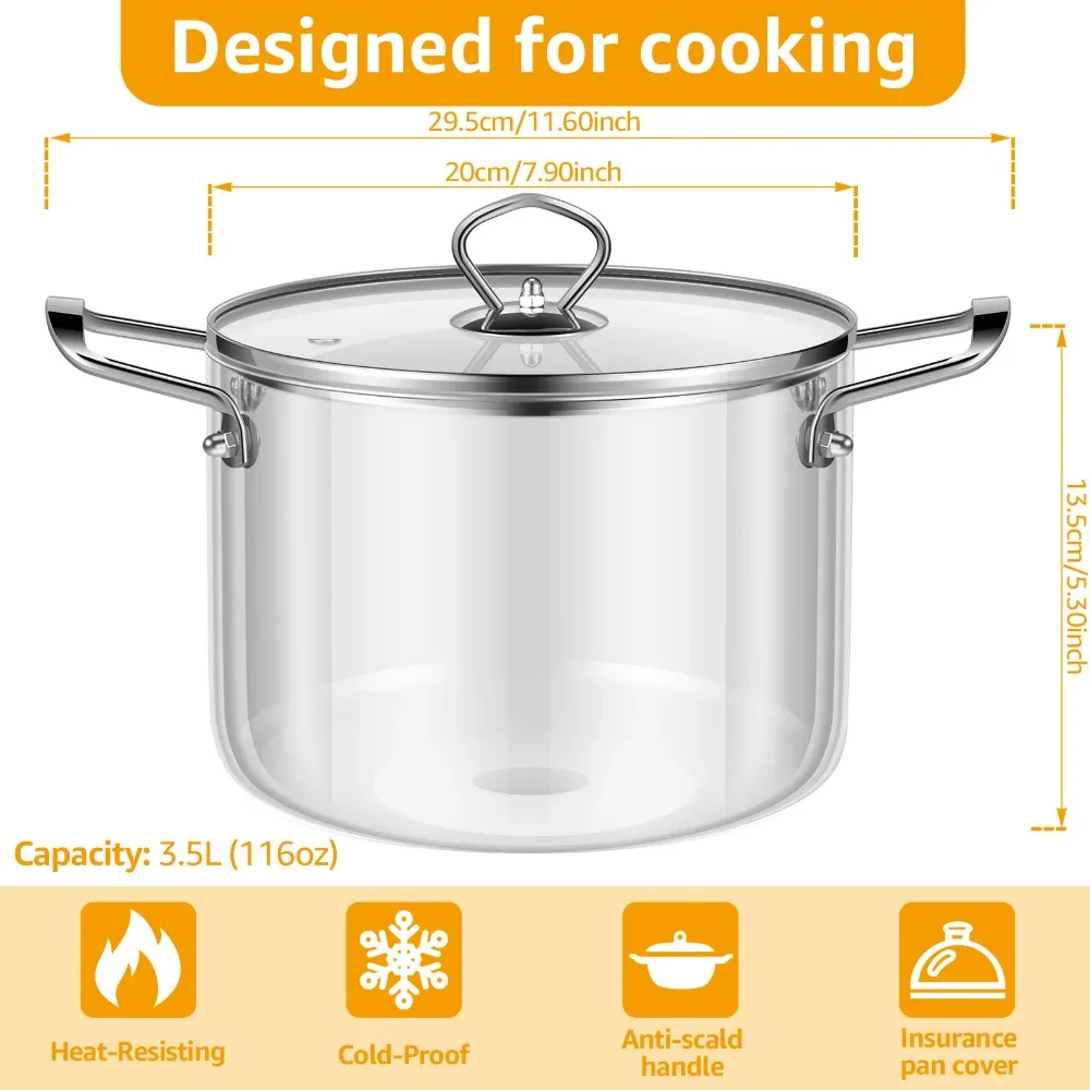3.5L Glass Soup Pot with Lid and Stainless Steel Handles