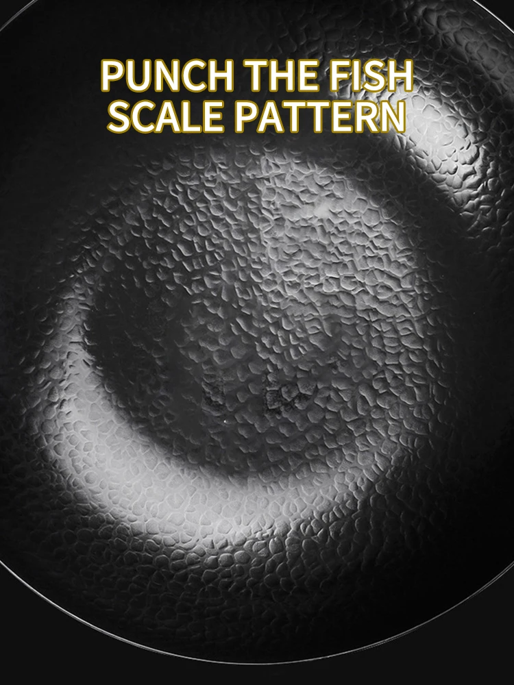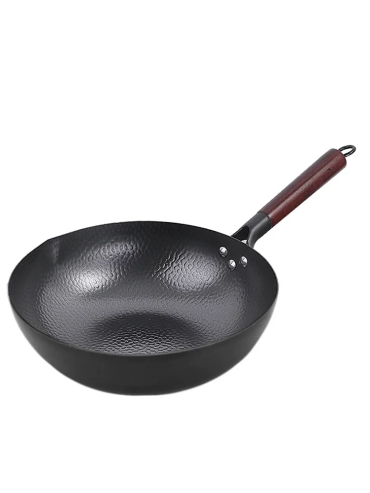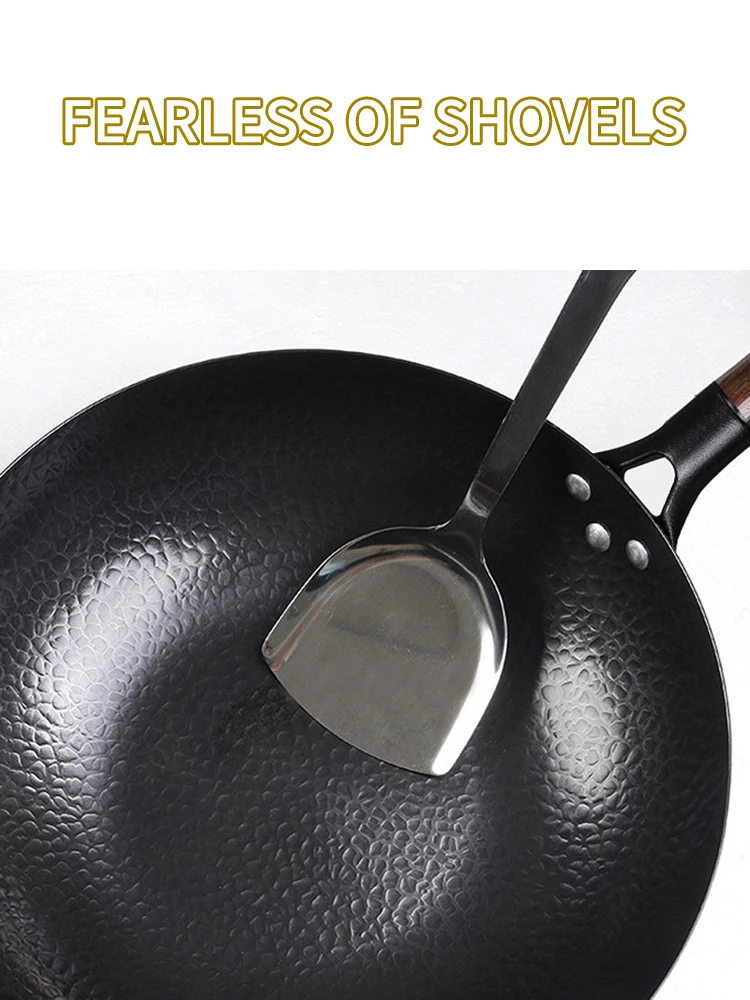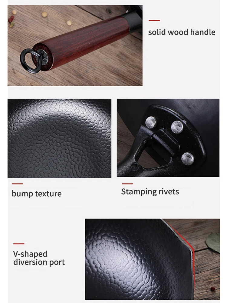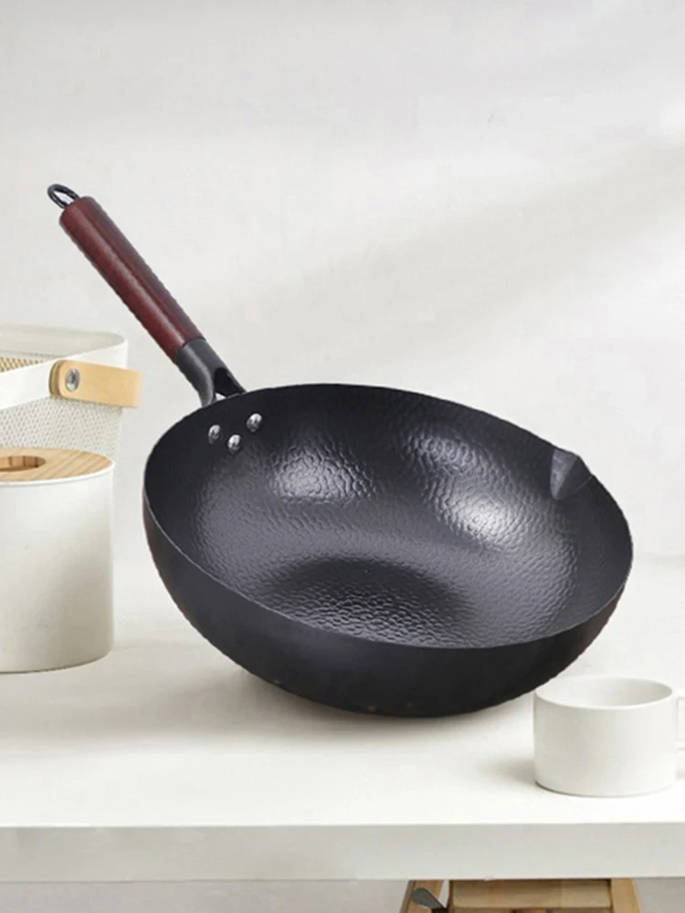 Konco Pure Iron wok cast iron pan Non-coated Pot General use for Gas and Induction Cooker 32cm Chinese Wok Cookware Pan