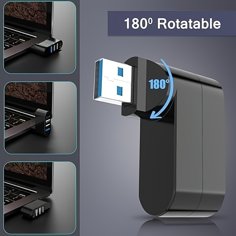 4-Port USB 3.0 Hub with 90 and 180 Degree Rotation for Laptops
