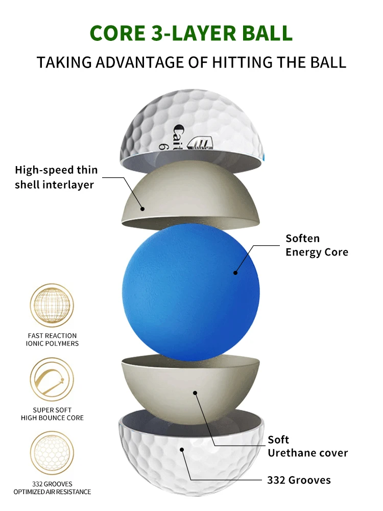 ● High-Performance Sarin Material:Caiton three-layer competition golf balls are made with high-performance Sarin material, offering exceptional durability and superior feel.
