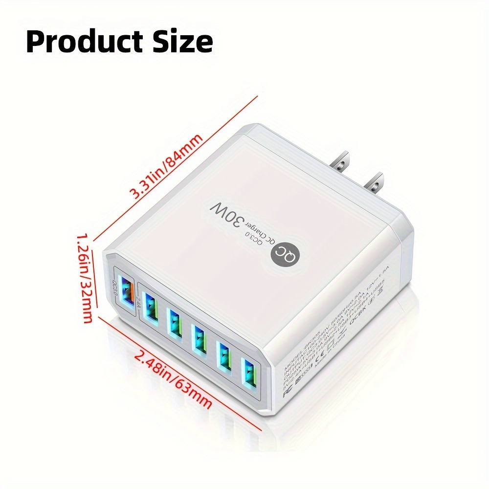 6-Port 30W USB Fast Charging Wall Adapter with US Plug