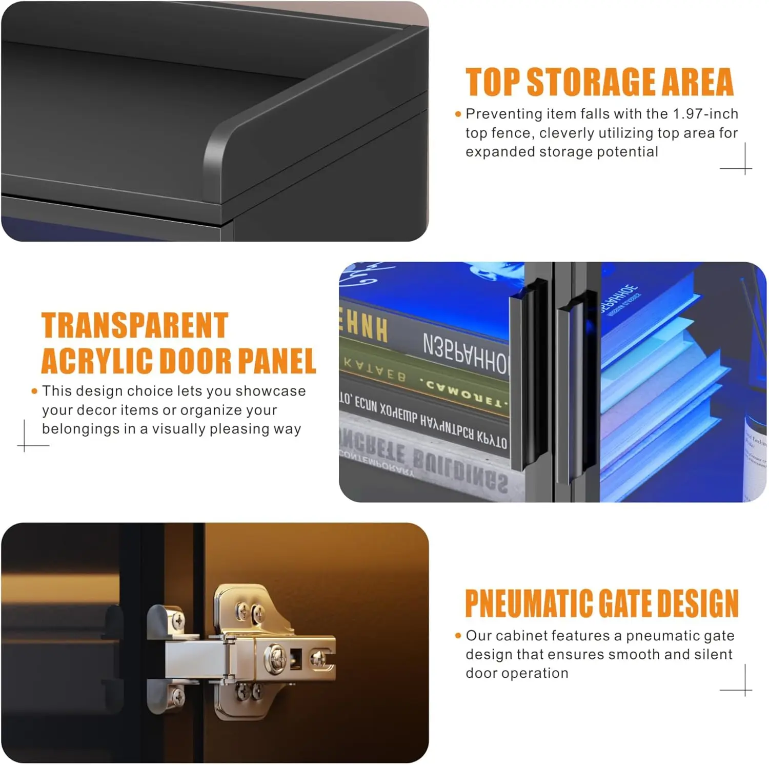 Smart Sensor LED Lighting: This display cabinet features intelligent motion-sensing technology with three adjustable light modes (blue/white/yellow). The lights automatically illuminate when you approach and turn off when you leave, providing convenient visibility in low-light conditions while optimizing energy efficiency. No more fumbling in the dark to find your prized possessions. Ample Storage Capacity: Measuring 13.78" deep by 27.56" wide by 64.96" high, this versatile cabinet offers generous storage space with two adjustable and two fixed shelves. Perfect for organizing books, displaying collectibles, storing kitchen items, or showcasing decorative pieces. The flexible shelving system accommodates items of various sizes and shapes. Elegant Transparent Design: Featuring clear acrylic doors that provide full visibility of your displayed items while protecting them from dust and damage. The sleek modern design complements contemporary home decor styles, seamlessly integrating with your living room, bedroom, office, or dining area. Showcase your collections with pride and enhance your interior aesthetic. Durable Construction: Crafted from high-quality wood materials that ensure long-lasting durability and stability. The waterproof surface resists moisture and stains, making maintenance simple with just a quick wipe-down. Built to withstand daily use while maintaining its elegant appearance over time. Simple Assembly Process: Comes with comprehensive step-by-step instructions that make assembly straightforward for anyone. All necessary hardware and tools are included, requiring no special skills or additional equipment. Typically takes less than an hour to set up, ready to use immediately after assembly. Versatile Application: Ideal for multiple spaces including living rooms, bedrooms, offices, kitchens, and dining areas. Excellent for displaying collectibles, storing books, organizing toys, showcasing antiques, or creating an attractive storage solution. The neutral black finish matches various color schemes and decor styles. Space Optimization: The tall vertical design maximizes storage capacity without occupying excessive floor space. Perfect for smaller rooms or areas where efficient space utilization is essential. The adjustable shelves allow customization based on your specific storage needs and item sizes.