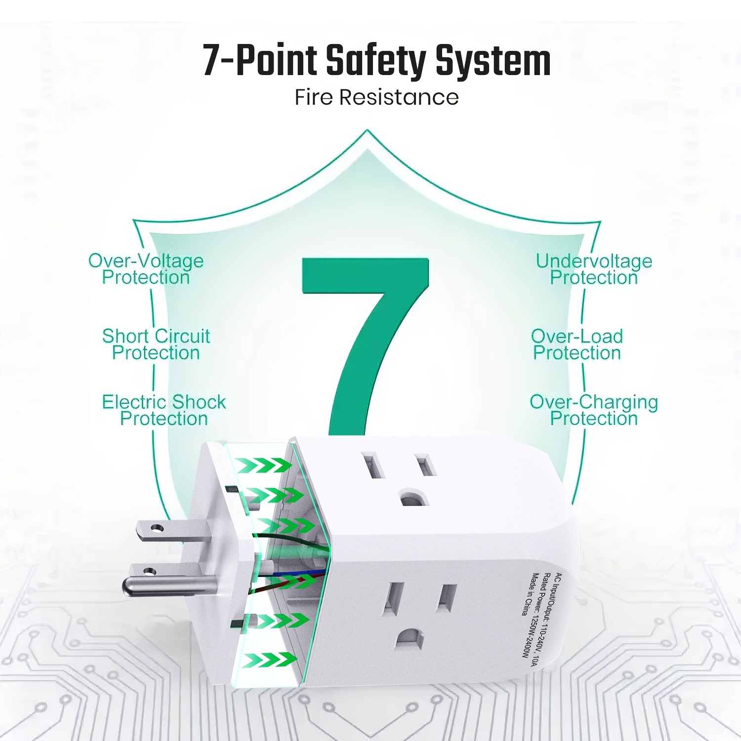 7-in-1 Multi Plug Outlet Extender with 3 USB Ports and 4 AC Outlets