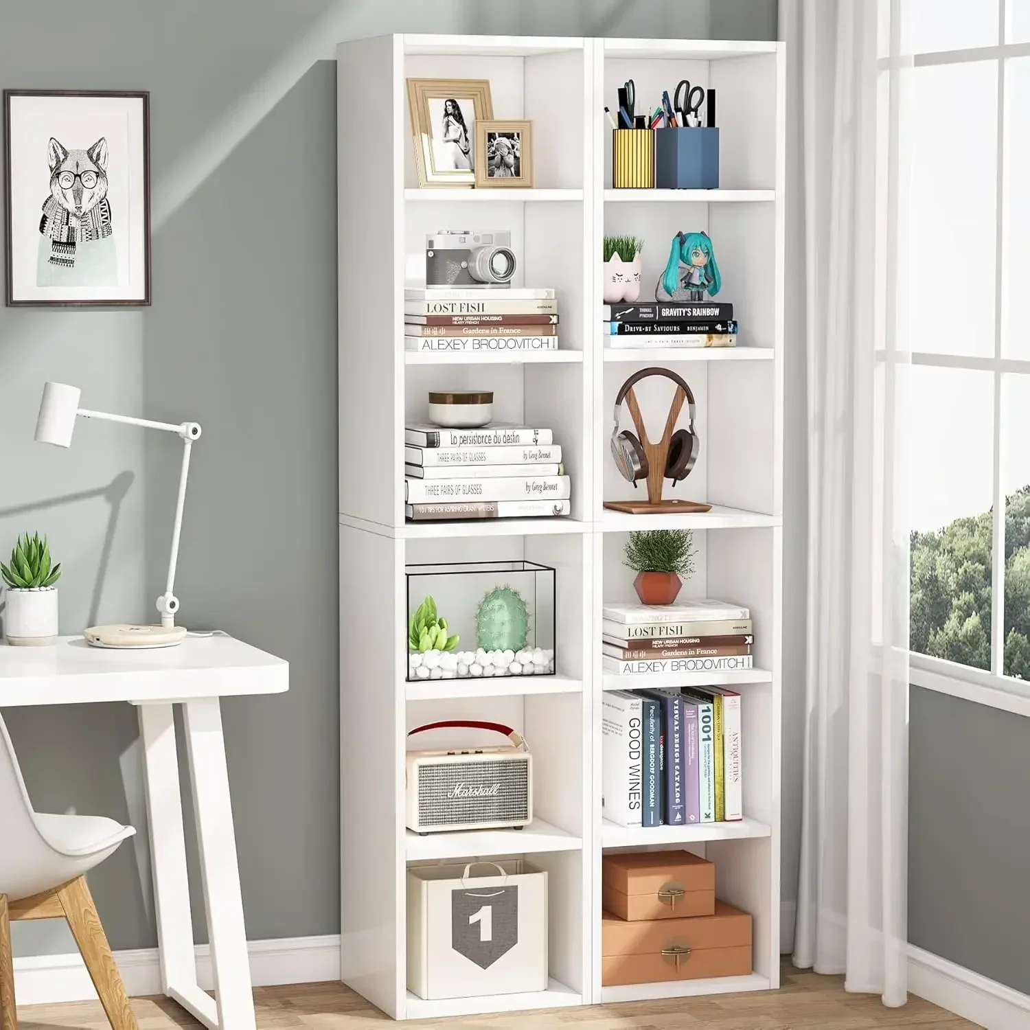 - 【Space Saving Design】With a compact design, this narrow and tall bookshelf allows you to access more storage and display space, especially suitable for any tight corner in your home. Overall size: 70.9"H*11.8"W*11.8"D
