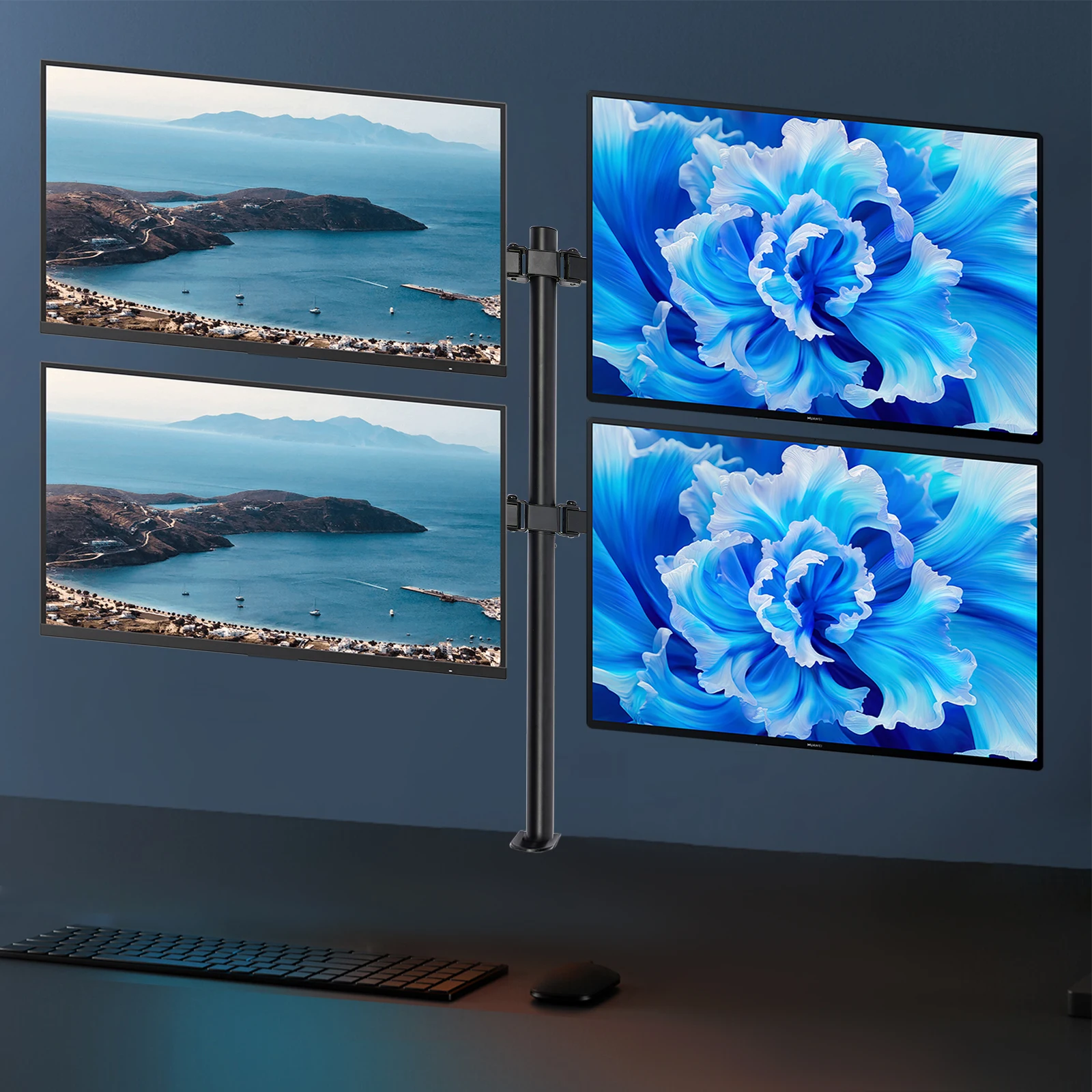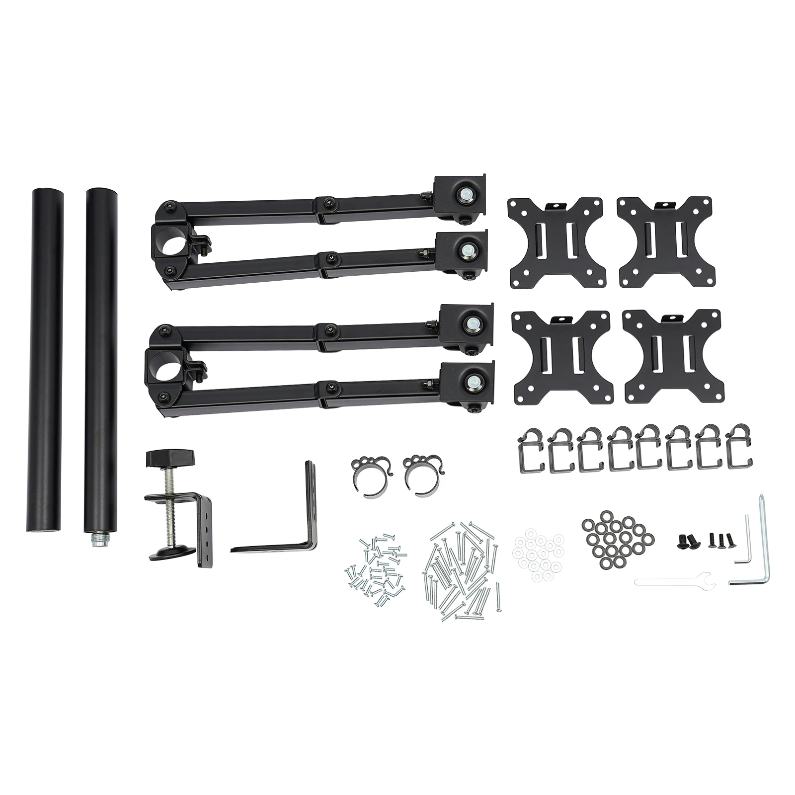 Are you still struggling with neck pain caused by long hours of computer-watching at work? Our display bracket can solve your troubles. The combination of high-quality material and exquisite craftsmanship makes it sturdy and durable. Its height and tilt angle can be adjusted, making it comfortable for you to work. It can install 4 displays and allows you to freely choose multiple screen combinations, allowing you to work efficiently. The powerful load-bearing capacity allows you to use it with confidence. Anyway, it's your office assistant!