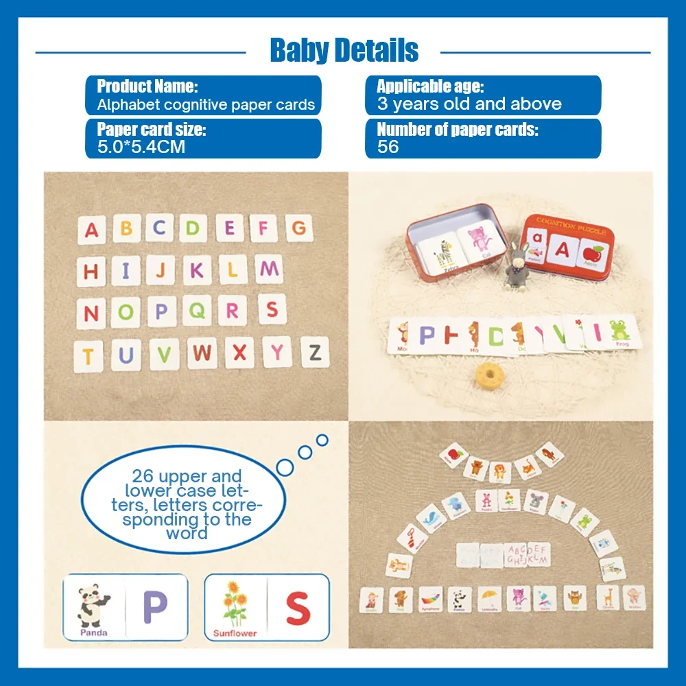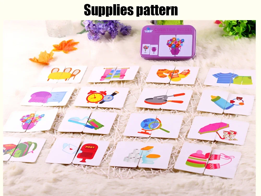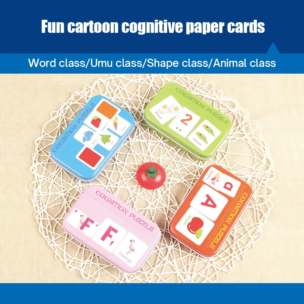 Baby Cognition Puzzle Toys Toddler Kids Iron Box Cards Matching Game Cognitive Card Car Fruit Animal Life Puzzle Gift