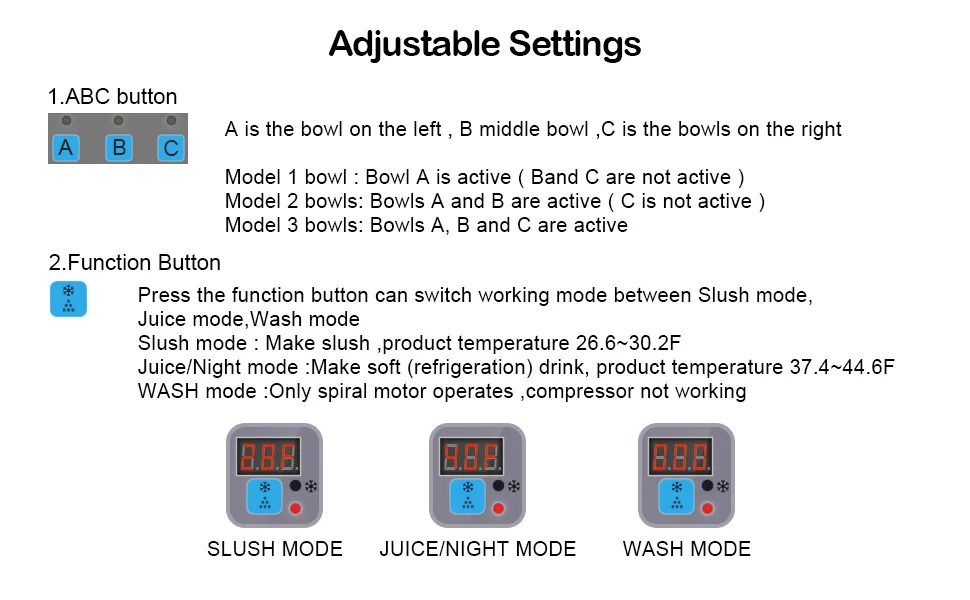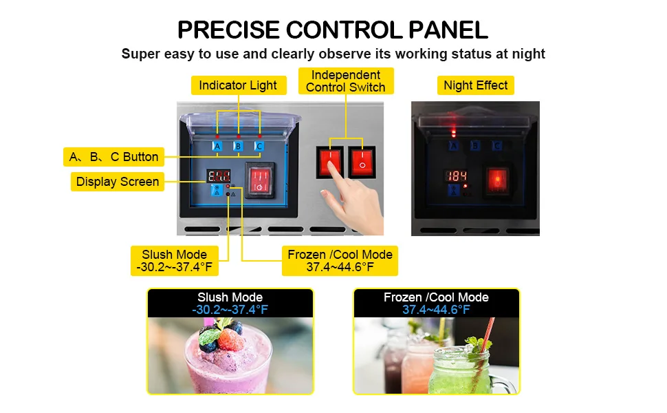 Independent A/B Tank Controls: Customize temps and modes (slush/cold drink) for each tank.