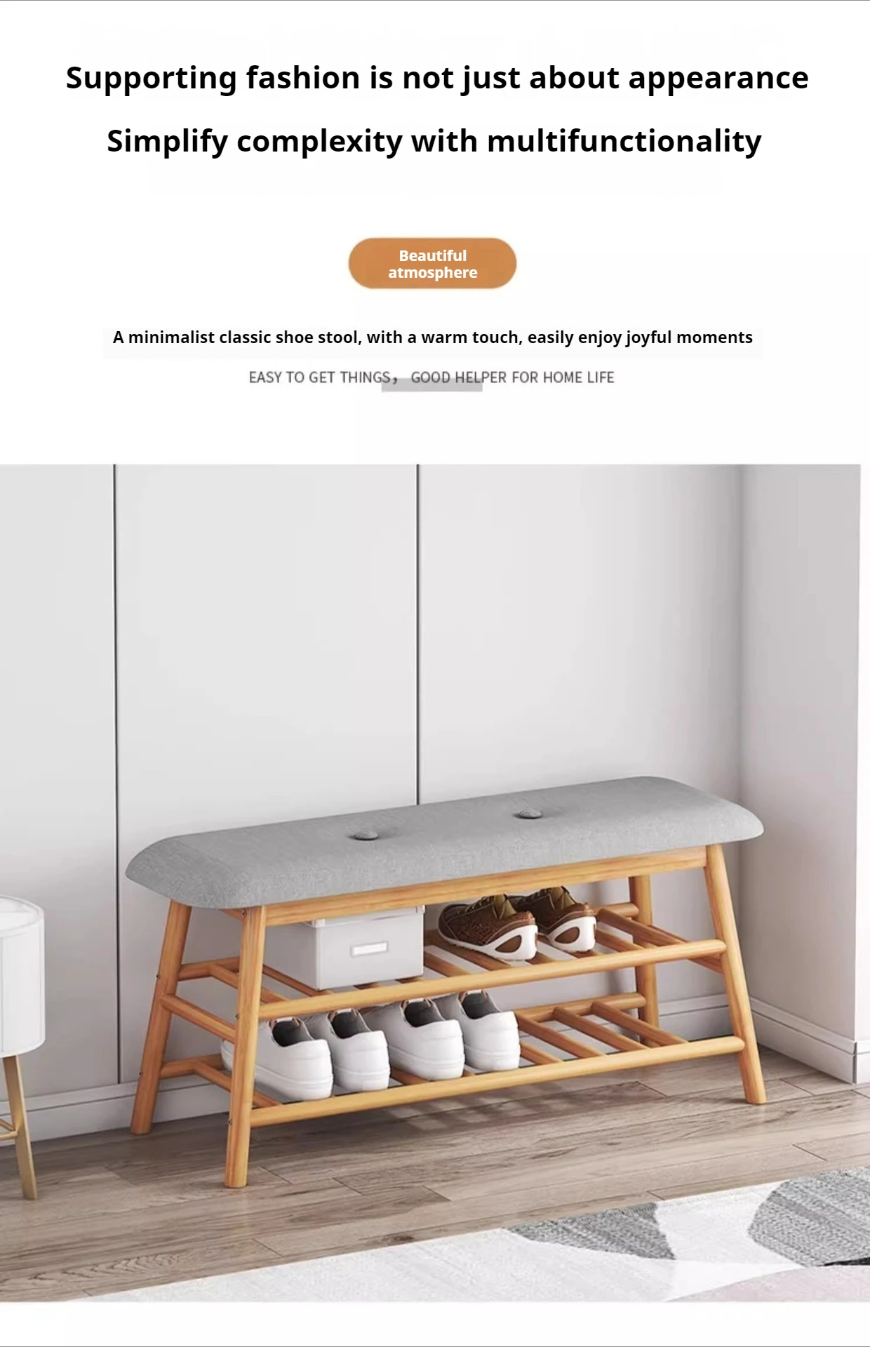 Cushioned Shoe Changing Stool with Integrated Shoe Rack