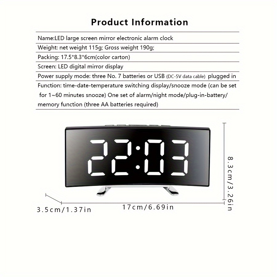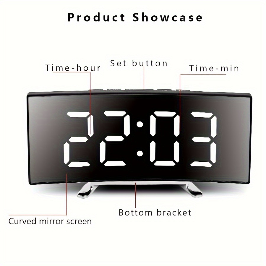Digital LED Mirror Alarm Clock with Silent USB Power