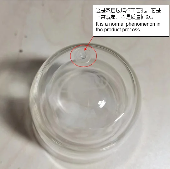 There is a air hole at the bottom of the product. It is a special process of double-layer glass cups and is a normal phenomenon, not a quality issue.