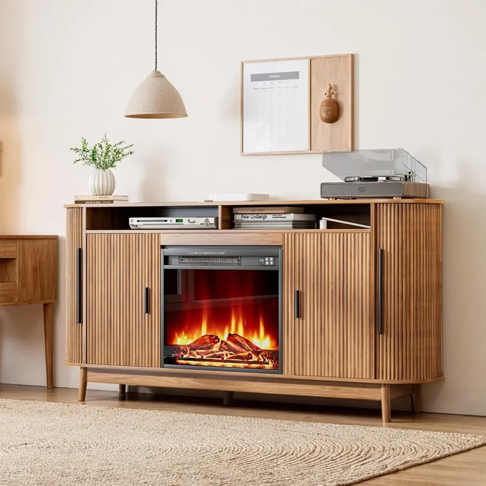 Ample Storage Space: The modern wooden TV console features extra large storage space with a total of 8 storage compartments, 3 adjustable shelves allow you to adjust the position of the shelves according to the size of your items to utilize the storage space more efficiently.The arched storage doors and sliding doors on both sides can hide some messy things well.