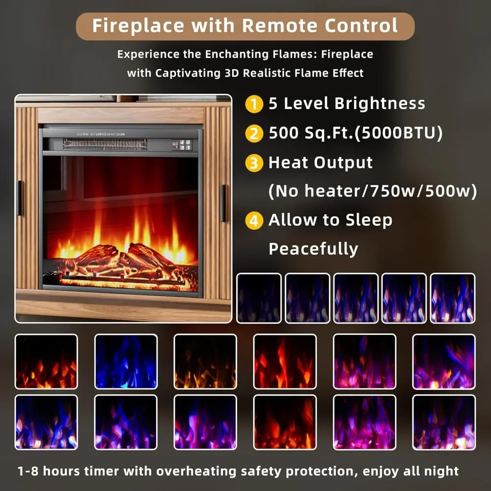 Realistic Electric Fireplace: Built-in fireplace creates a cozy ambiance with 12 adjustable flame colors, simulating a real fire effect for year-round enjoyment. Use the remote to switch between heat modes—ideal for warming your living room in winter or adding a romantic glow without heat in warmer months. It’s a safe, energy-efficient way to enhance movie nights and family gatherings, turning your space into a welcoming retreat.