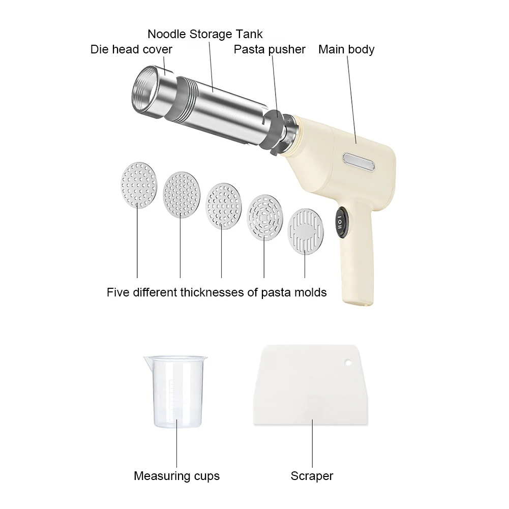 Electric Pasta Noodle Maker 5 Molds Handheld Pasta Machine Portable Rechargeable Utility Kitchen Gadget Feature: