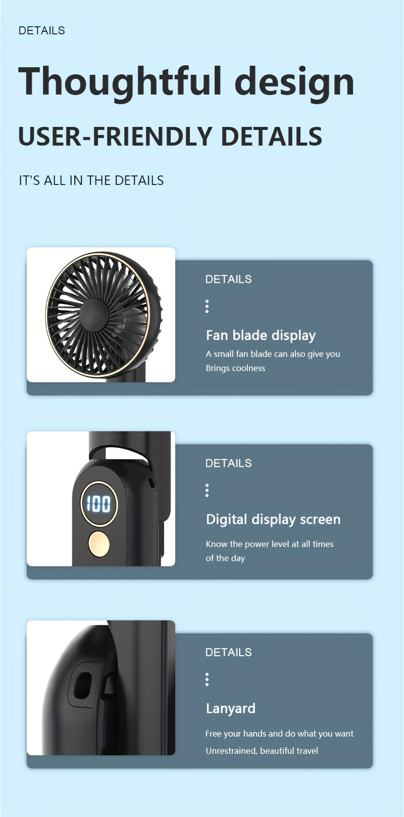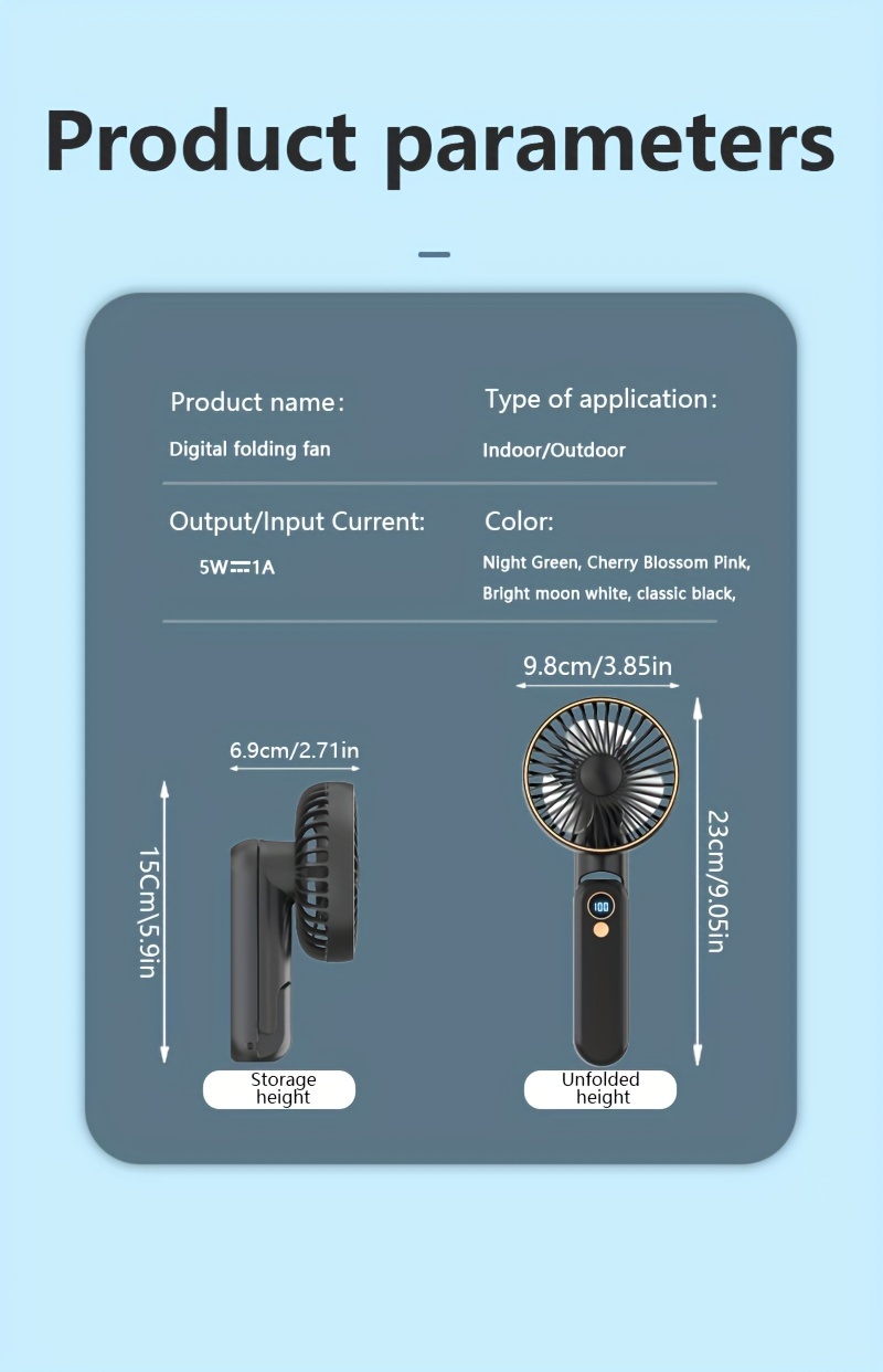 Foldable Handheld USB Fan with 4000mAh Battery and Digital Display