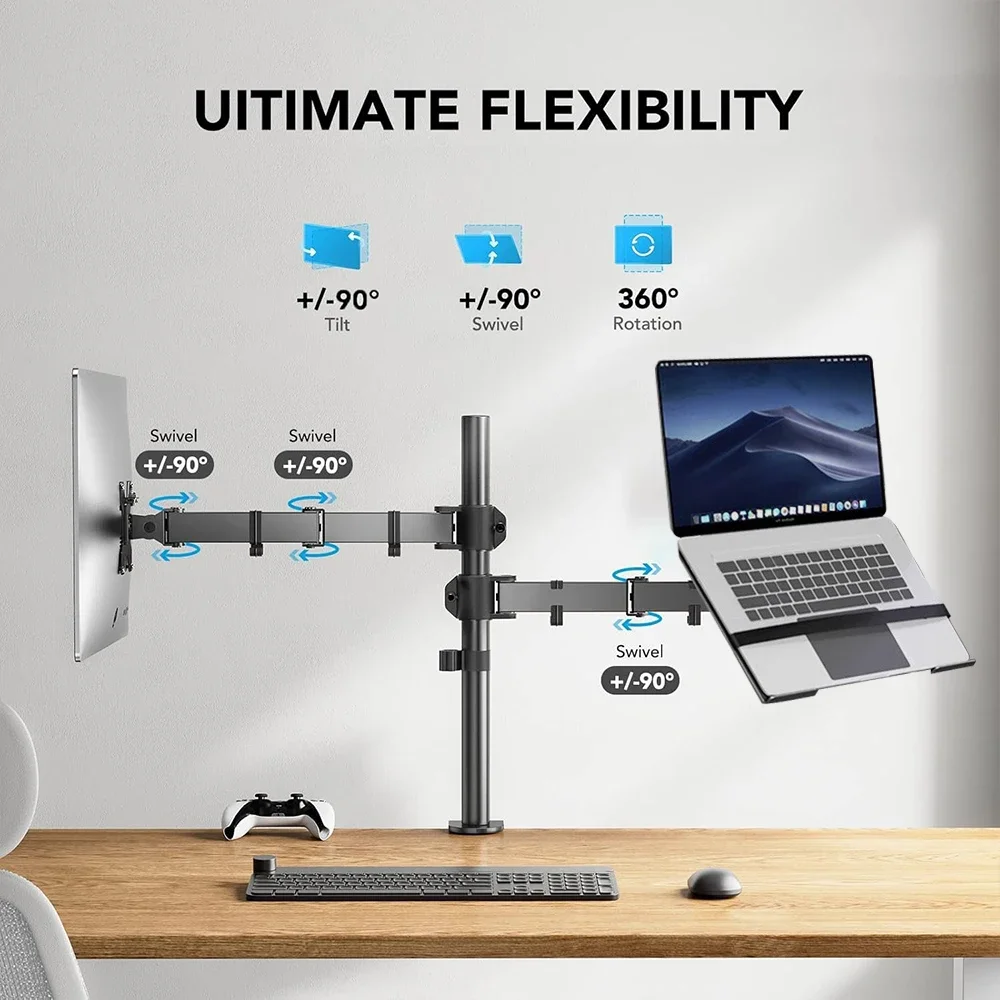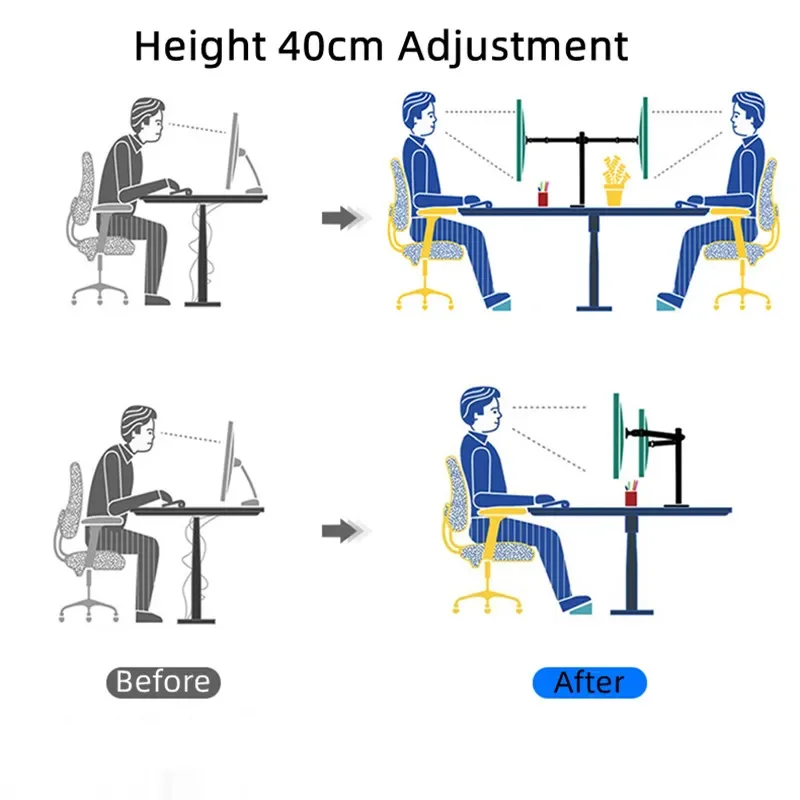 Freestanding Dual Monitor Stand with Height Adjustment, Tilt, Swivel, Rotation up to 27 Inches