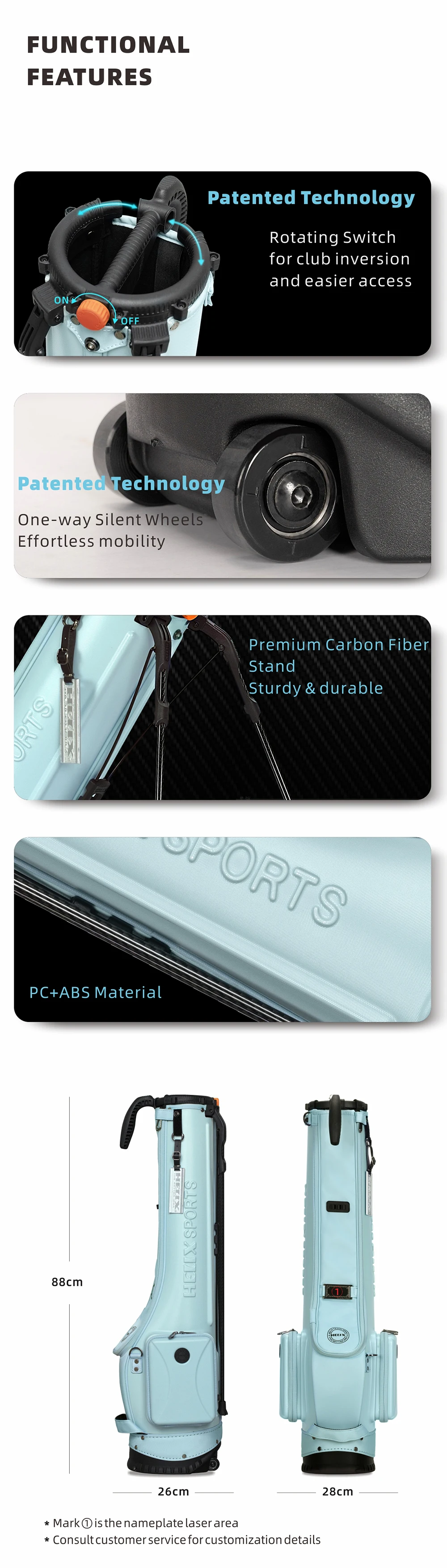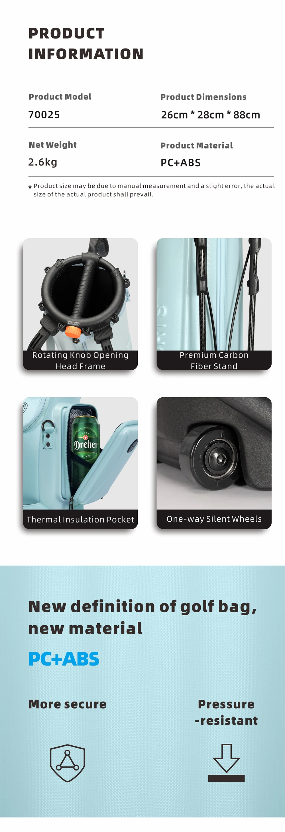 Golf Stand Bag in ABS/PC Material with Silent-Rolling Wheels and Inverted Club Design