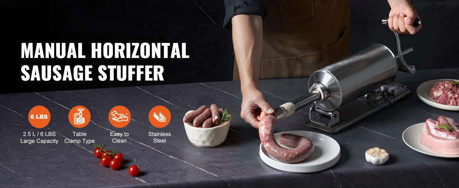 2.5 L / 6 lbs Large Capacity: With a 2.5 L / 6 lbs large capacity barrel, it efficiently produces sausages in large quantities, perfect for both home and commercial use, such as supermarkets, restaurants, and more.