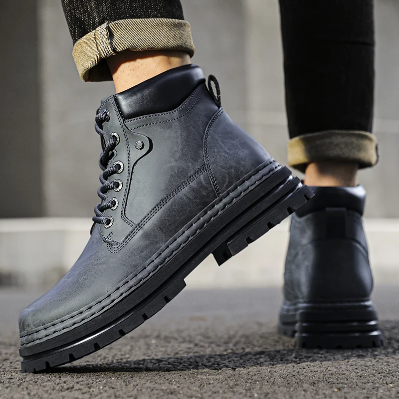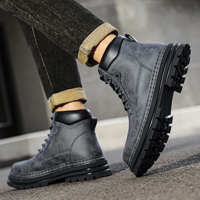 Men's Ankle Boots Lace-Up Flat Heel Bonded Leather Insole