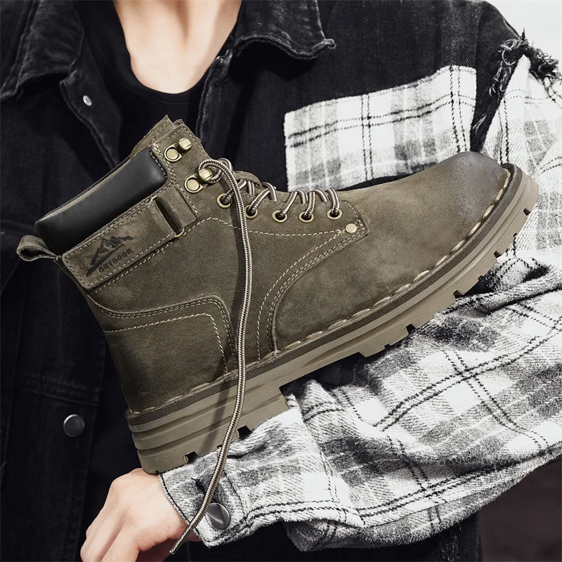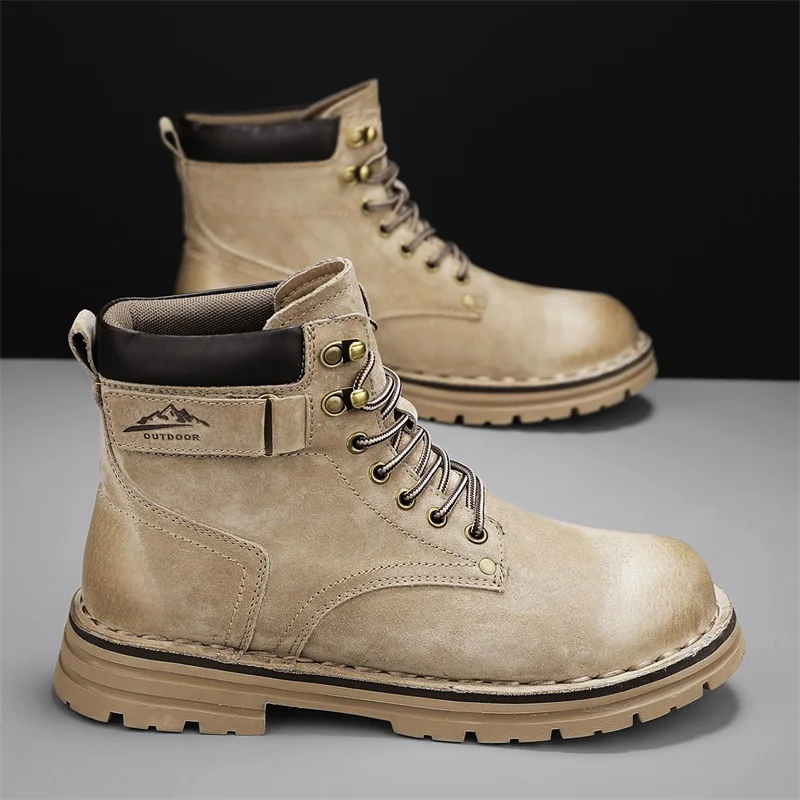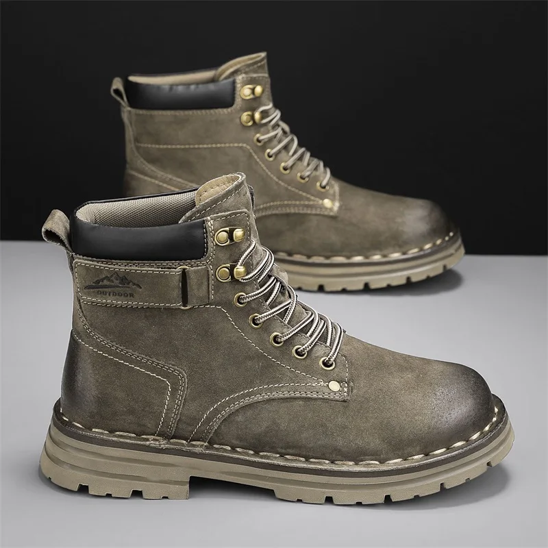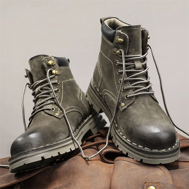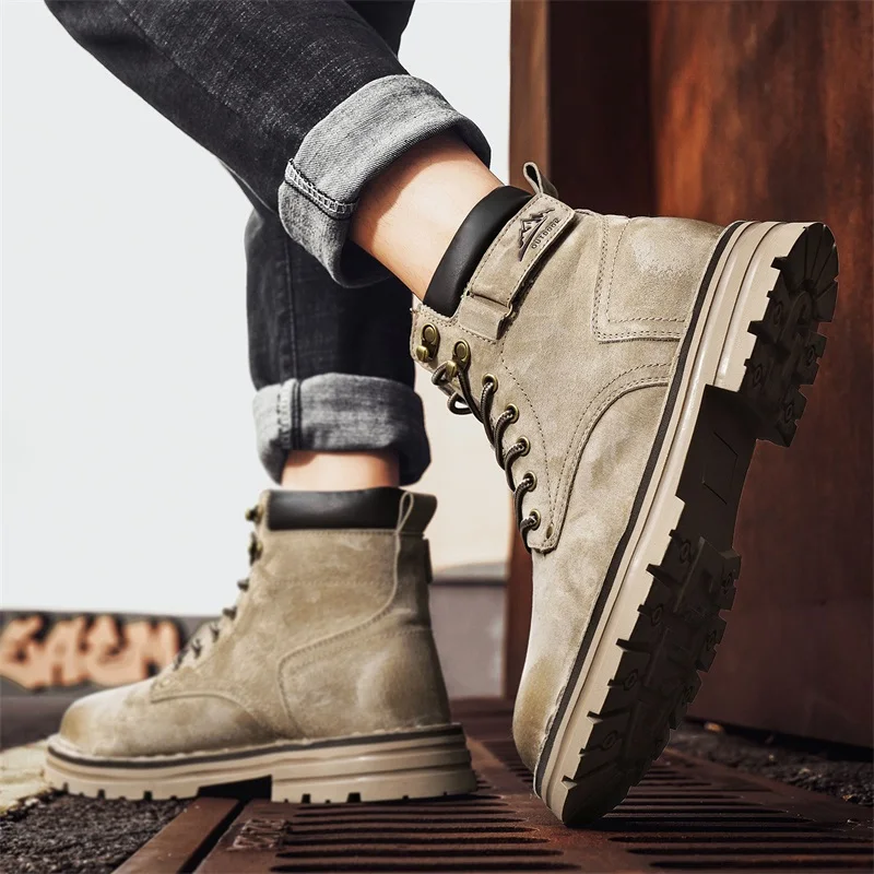 Men's Ankle Height Lace-Up Flat Heel Boots with Bonded Leather Insole and Mesh Lining