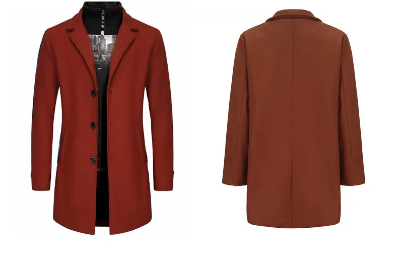 Men's Autumn Winter Long Sleeve Single Breasted Coat with Turn-Down Collar