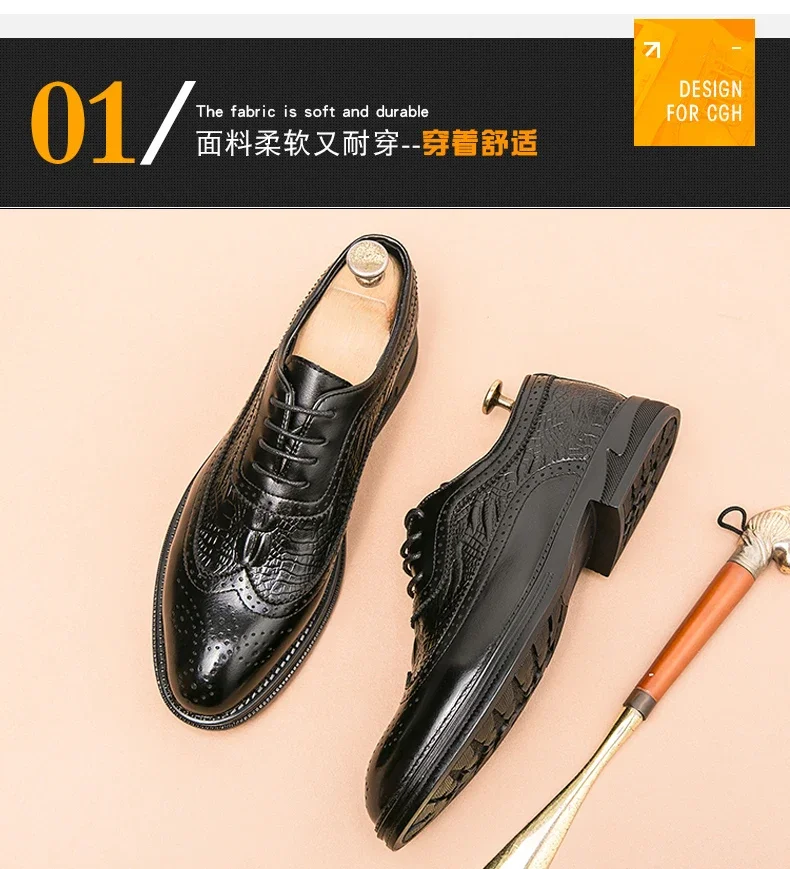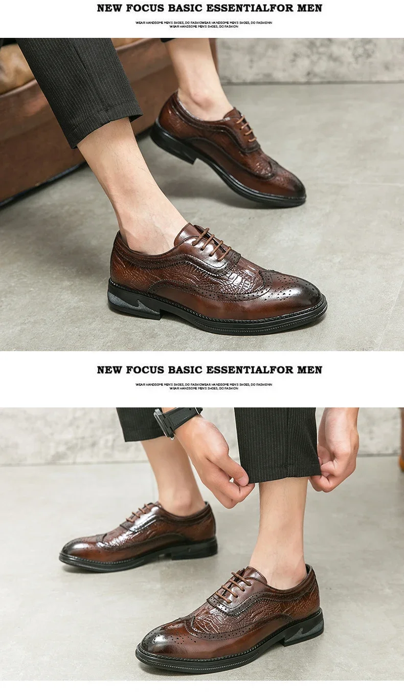 Men's Brown Leather Brogue Dress Shoes Size 46 For Formal Occasions