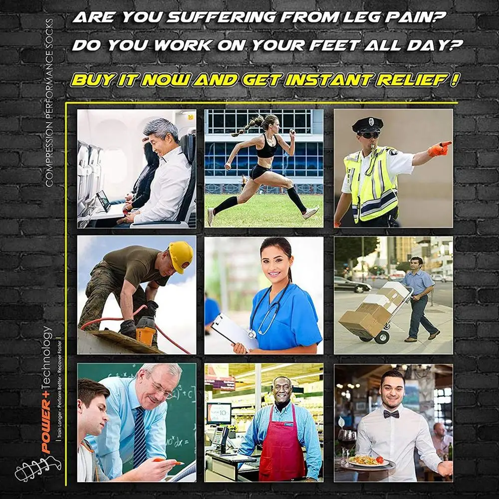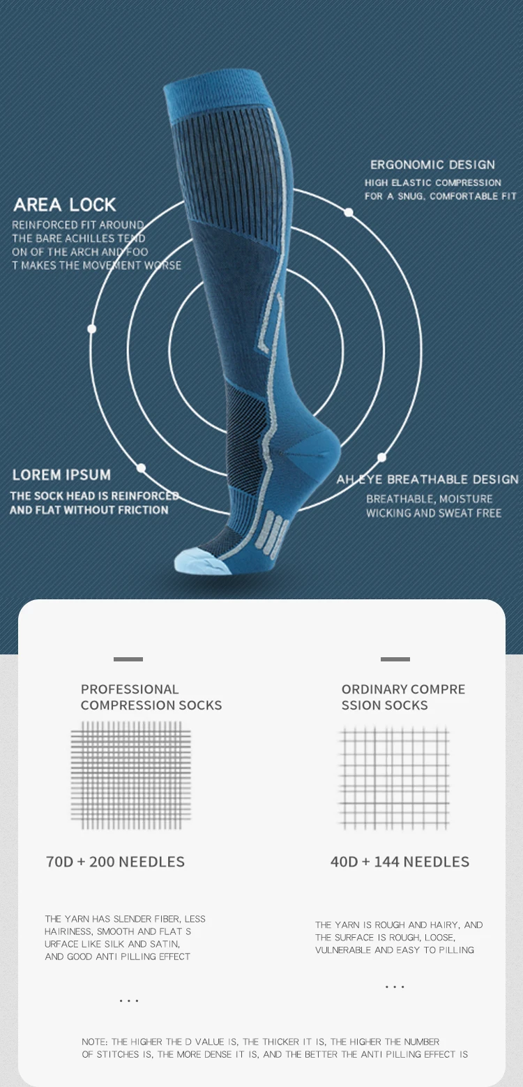 Whether you're an athlete who wants to excel in the game, who sit for long period during travel or at work, or someone dealing with pain due to a chronic condition, supporting proper blood flow to your feet is of the utmost importance.Our Compression Socks are engineered with the latest arch to calf compression technology, offering a targeted foot to calf muscle support,help to keep blood flowing to boost athletic performance and alleviate pain due to a number of conditions.