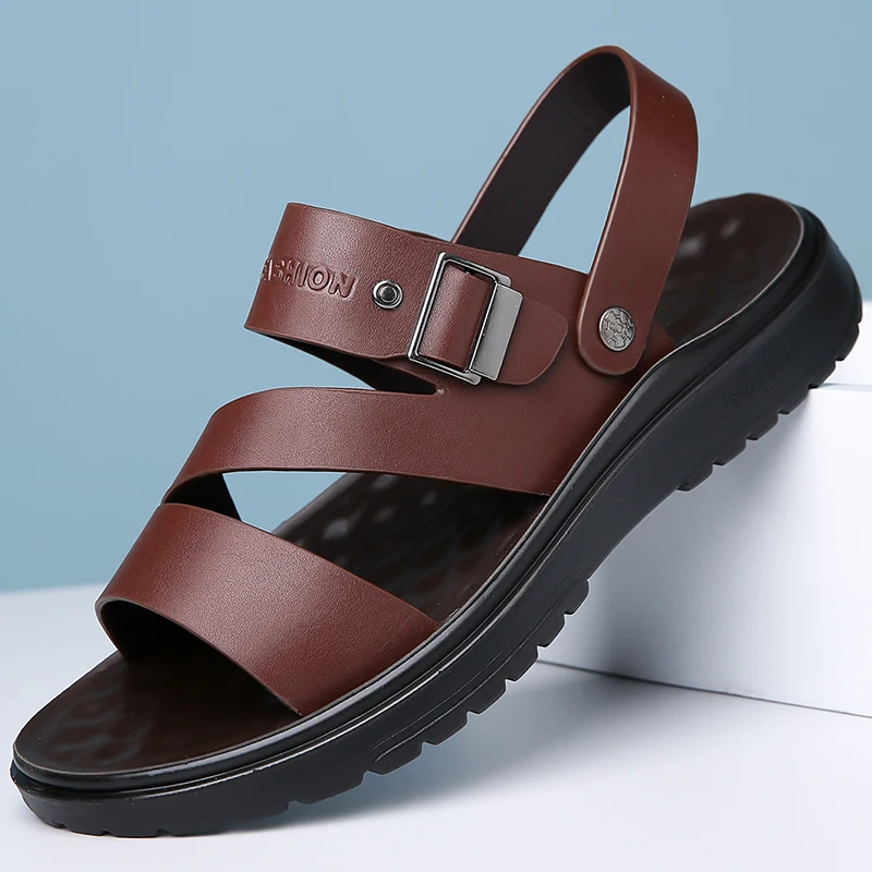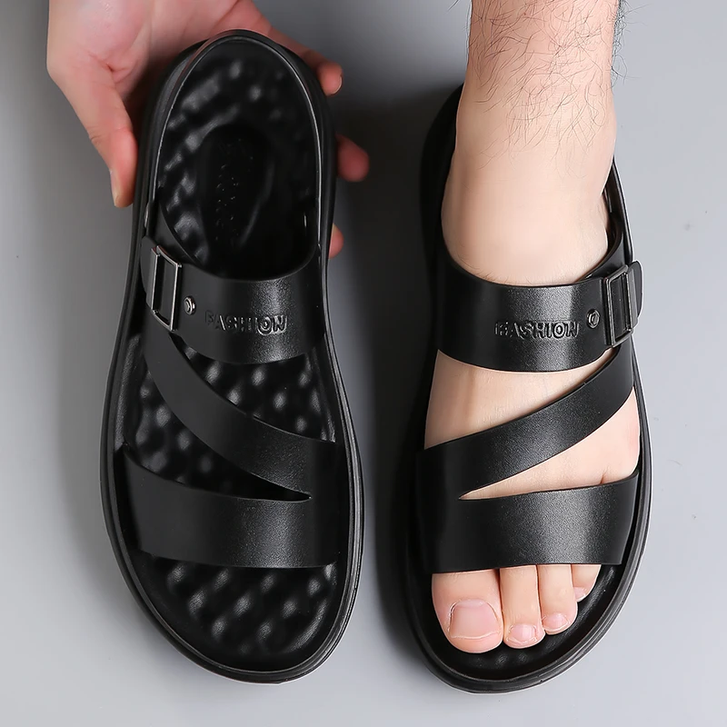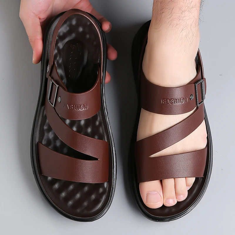 Men's Gladiator Beach Sandals with Artificial Leather Upper and PVC Outsole