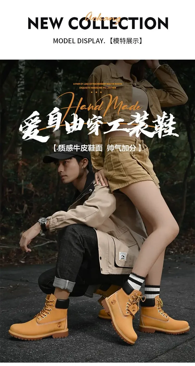 Men's Lace-Up Ankle High Boots with Medium Heel for Adults
