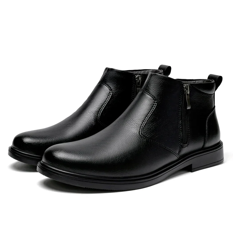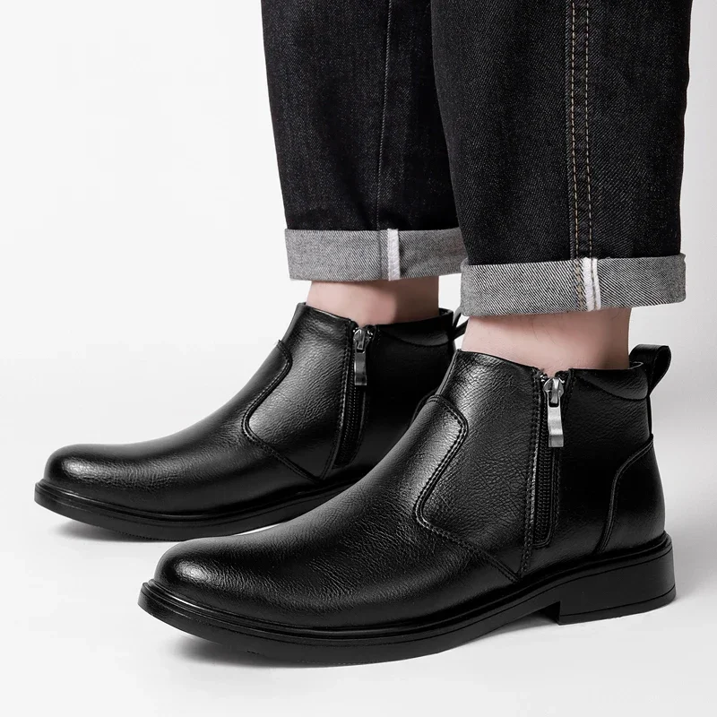 Men's Lace-Up Flat Heel Ankle Boots With Plush Lining For Winter