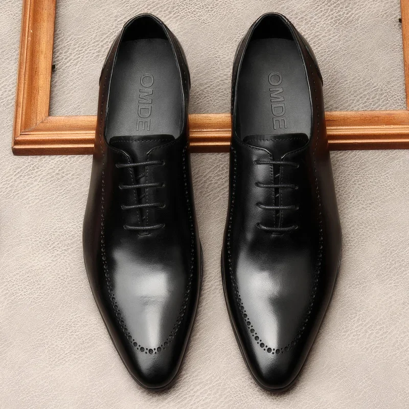 Men's Lace-Up Oxford Shoes Real Calf Leather Black Brown