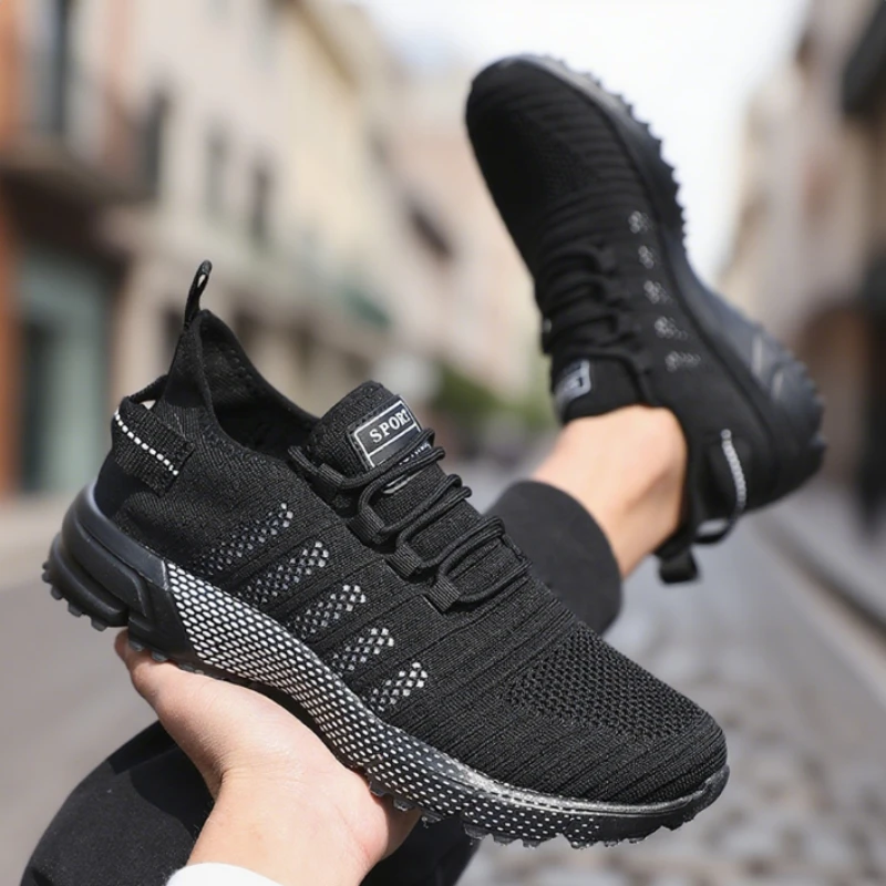 Men's Lace-Up Running Shoes With Mesh Lining And Rubber Outsole