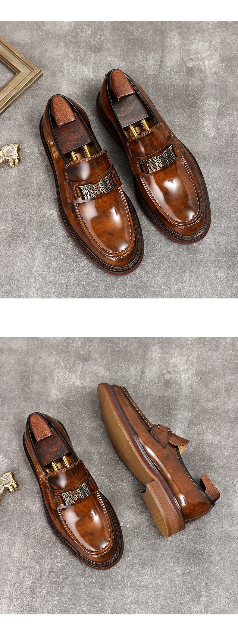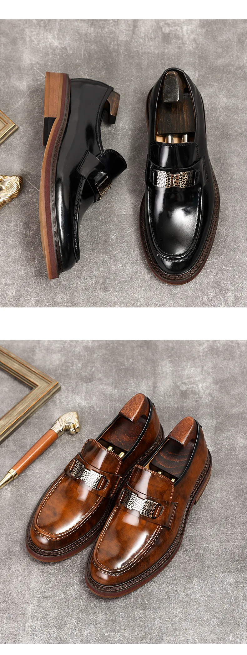 Men's Leather Formal Slip-On Loafers Brown Size 37-45