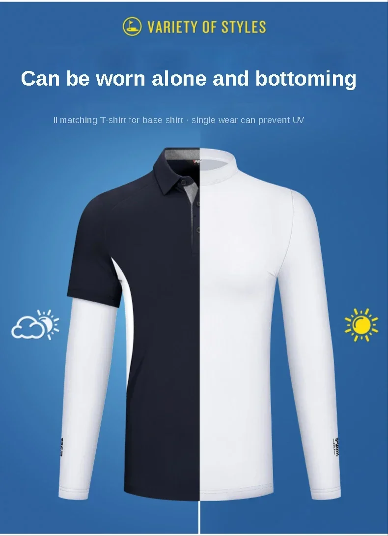 Men's Long Sleeve Acrylic Golf Shirt With Sun Protection And Cooling Features