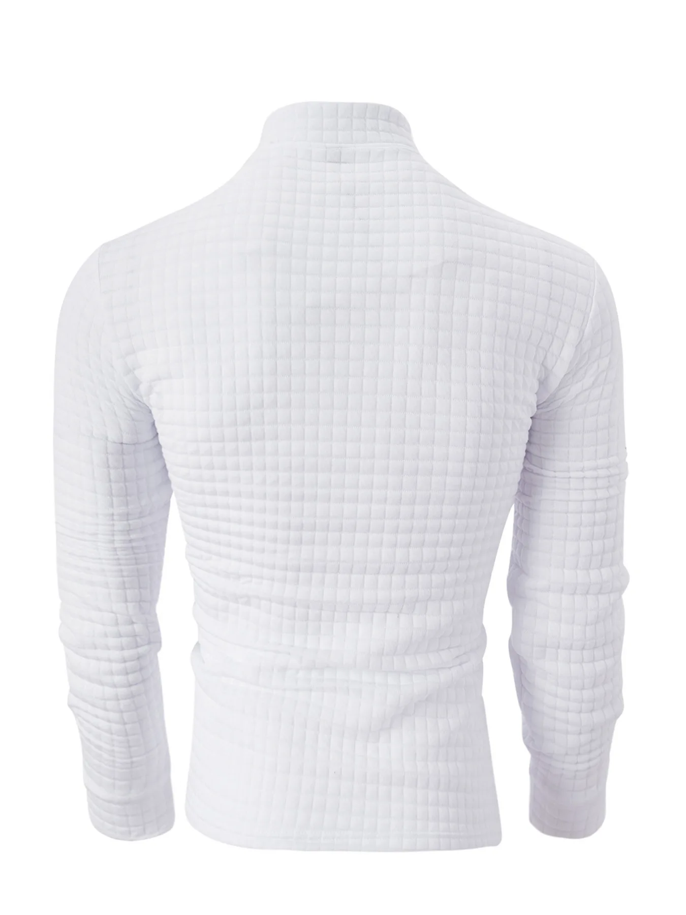 Men's Long-Sleeved Plaid Polo Shirt With Stand Collar Zipper And Pocket