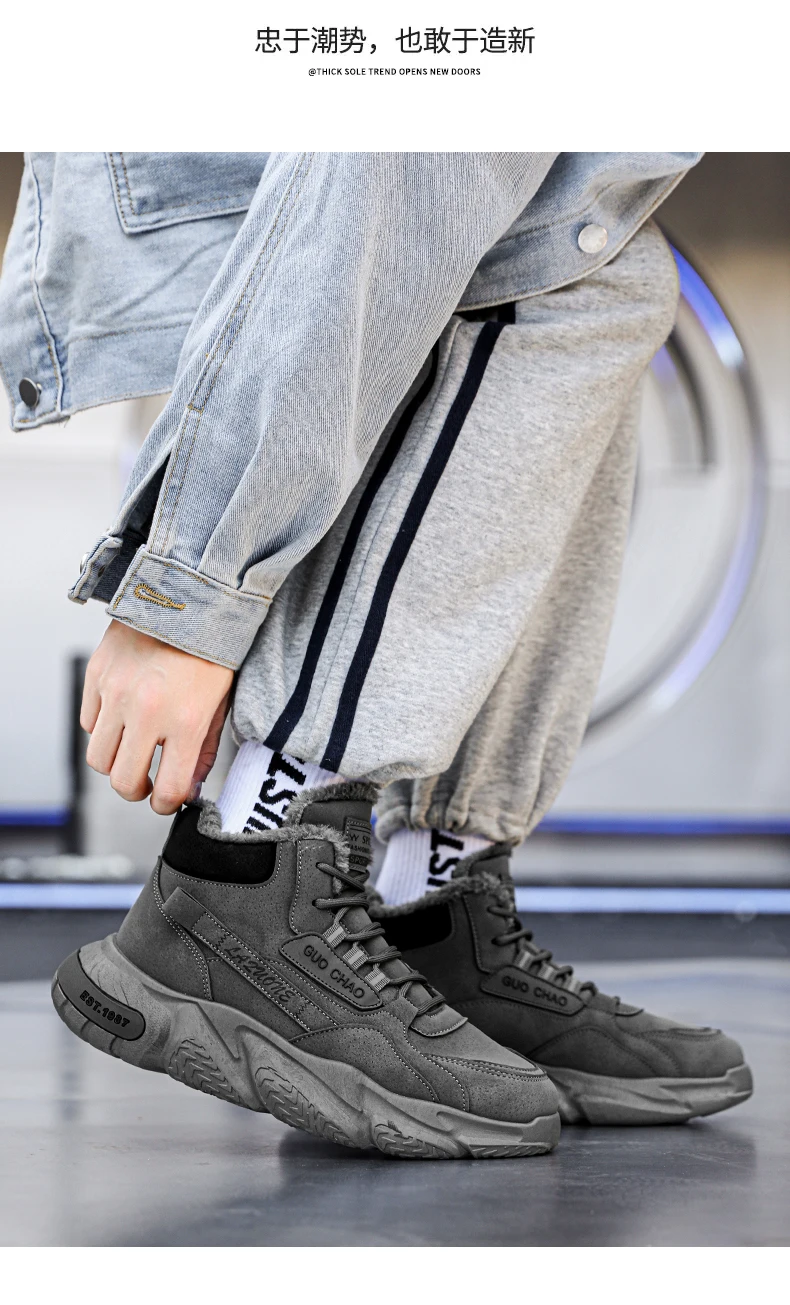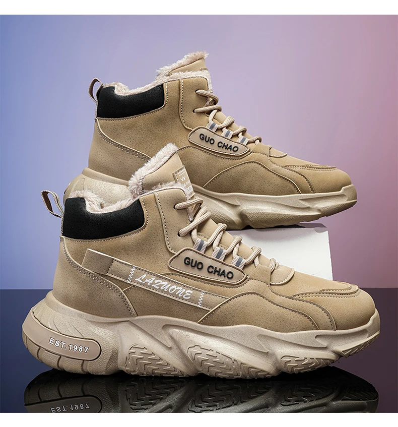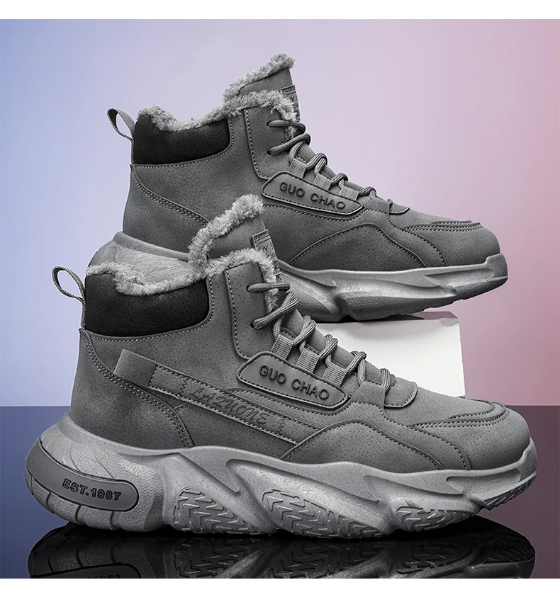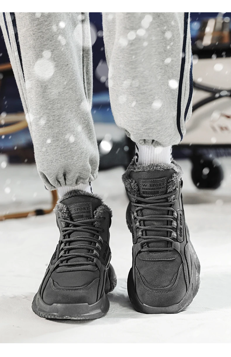 Men's Mid-Calf Wool Lined Snow Boots with Rubber Sole