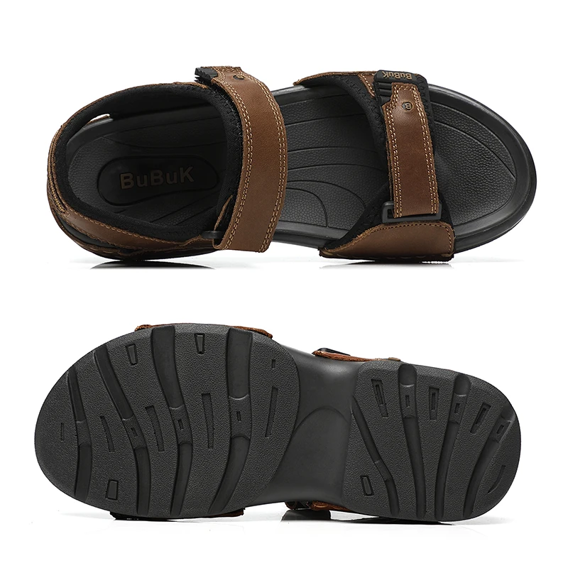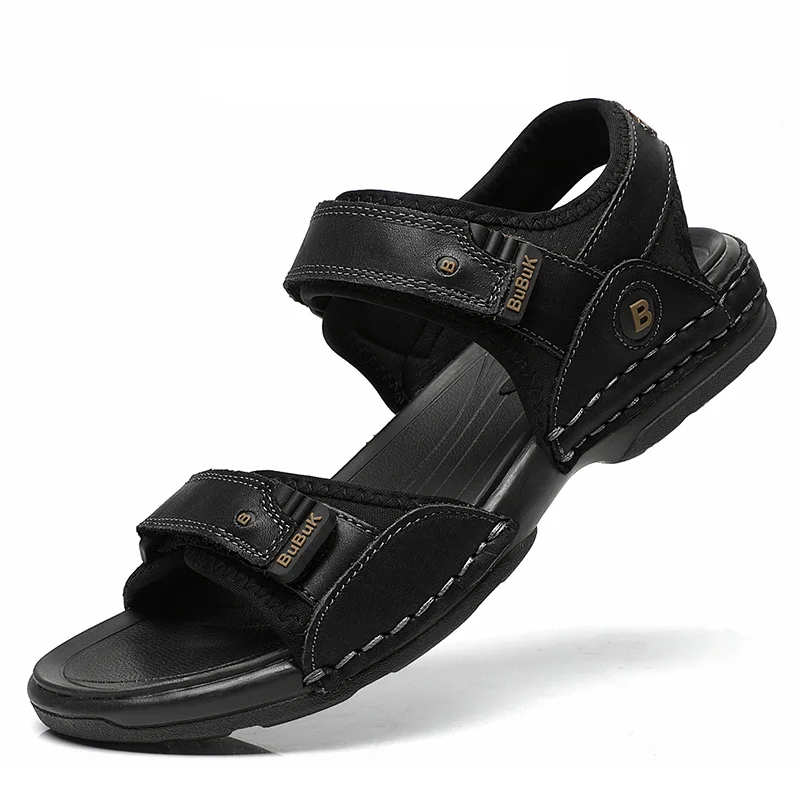 Men's Open-Toe Leather Sandals for Outdoor Casual Use