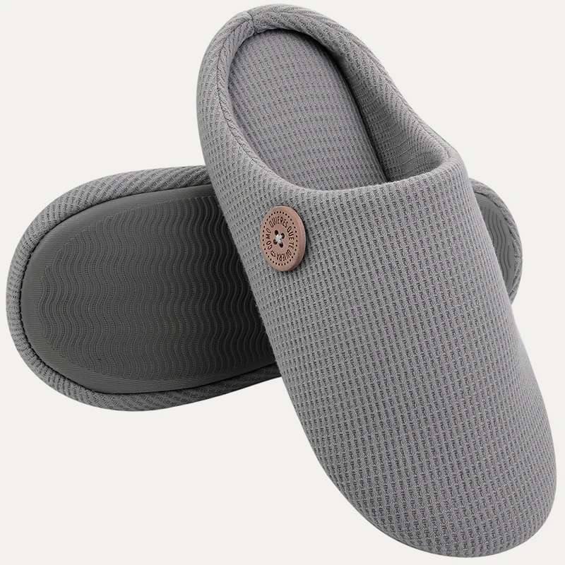 These slippers are made of high-quality and superior cotton-blend texture, combined with waffle design that could stop your feet from continuous stuffy feeling. The excellent and soft cotton material also absorbs the sweat from your feet quickly after a long day walking. They could be perfect for all seasons, especially for spring, summer and autumn.