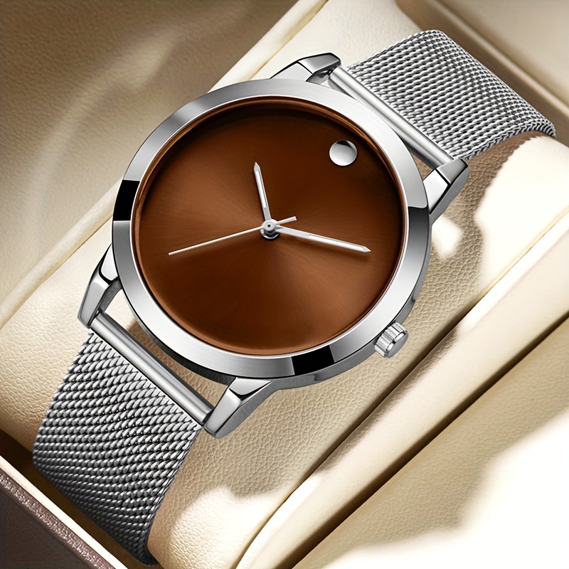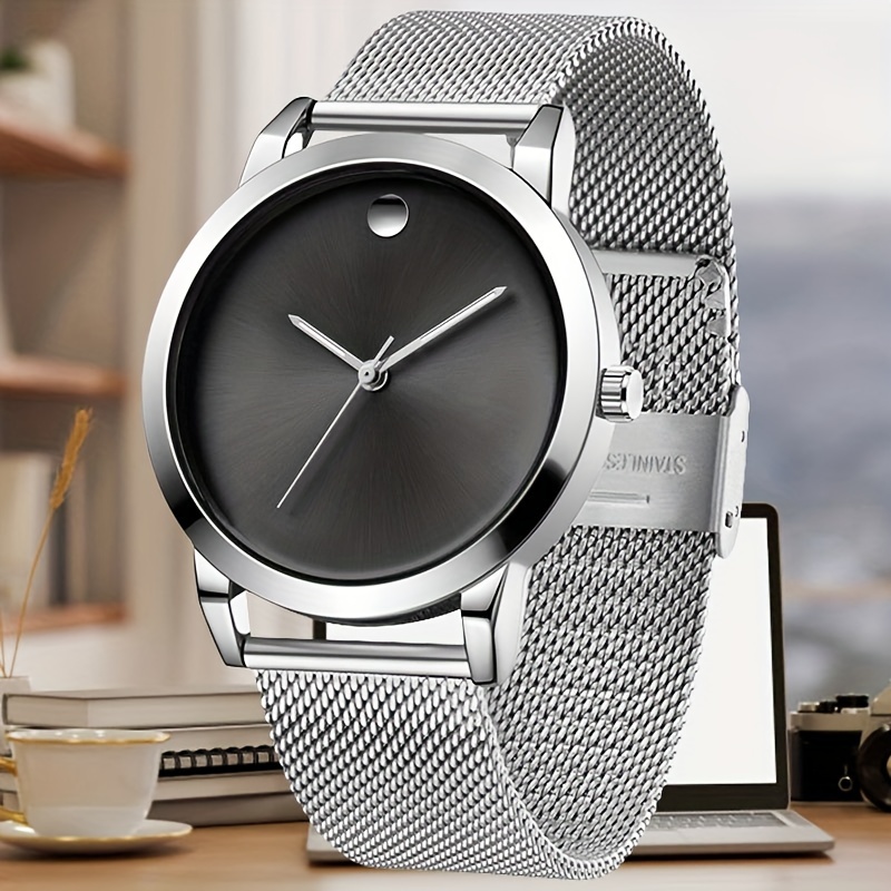 Men's Stainless Steel Quartz Movement Round Analog Wristwatch