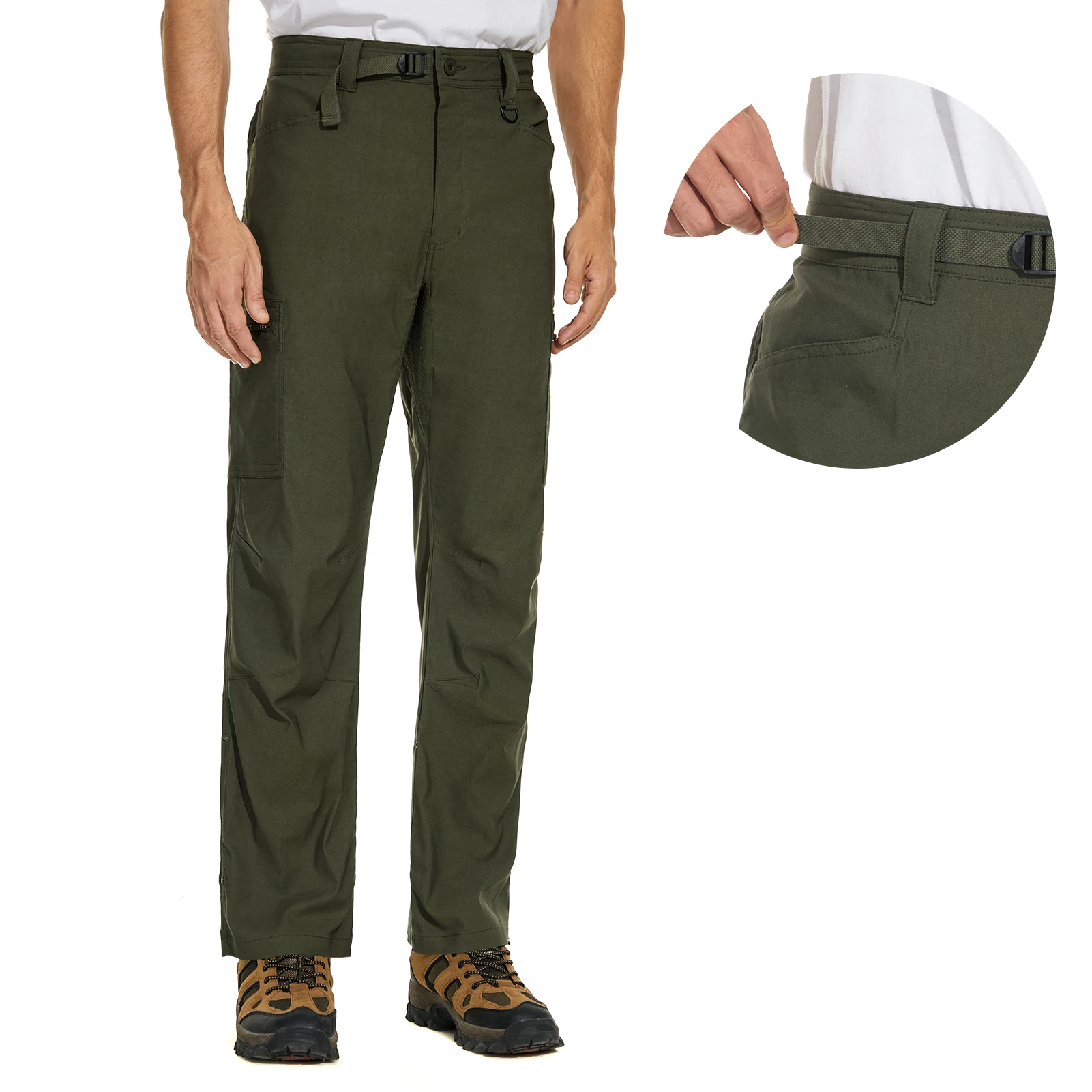 With roll-up leg snaps and folding line, these men’s lightweight pants are easy to be converted to cropped pants; Soft microfiber lined waist comes with an integrated cinch webbing belt