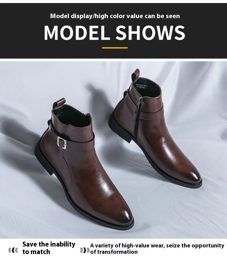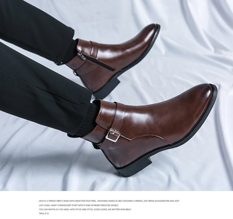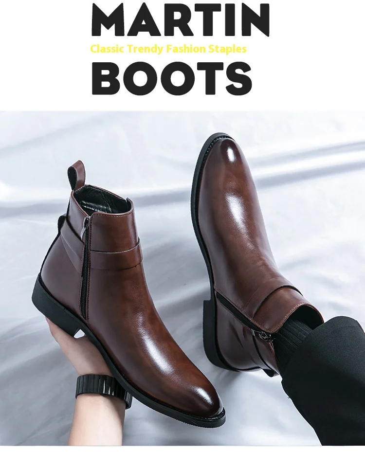 Men's Waterproof Ankle Riding Boots with Zipper and Low Heel
