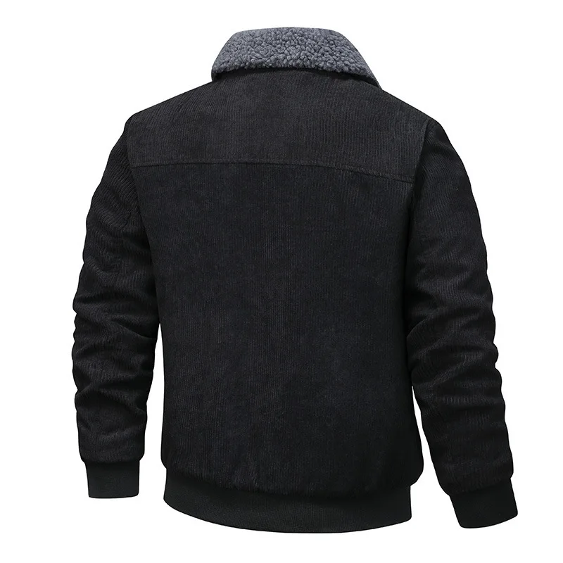 Men's Winter Plush Zipper Jacket with Turn-Down Collar and Long Sleeves