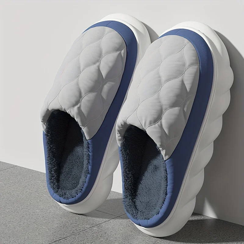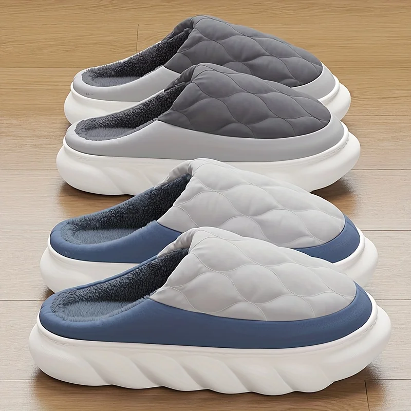 Men's Winter Slippers with Plush Upper, EVA Sole, Sizes 46-49, Grey