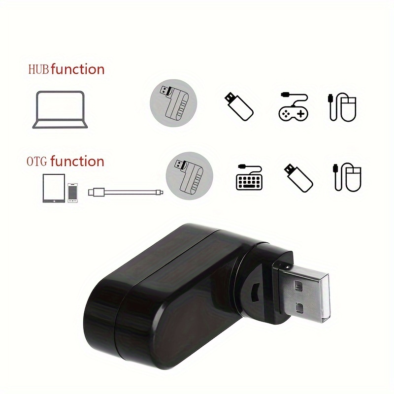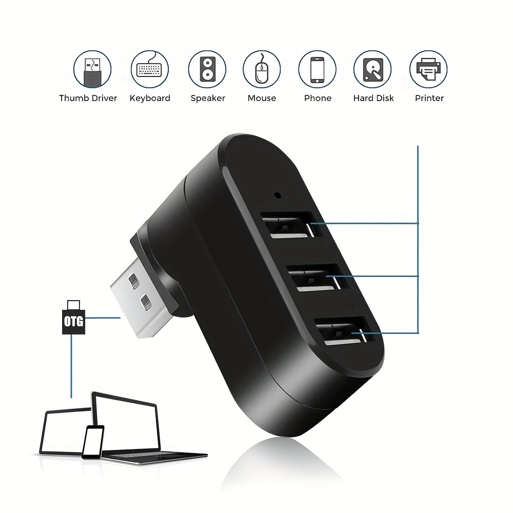 Mini USB Hub Adapter for Laptops with 3 Rotating Ports
