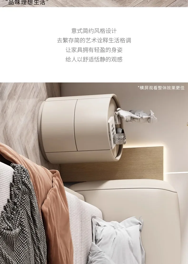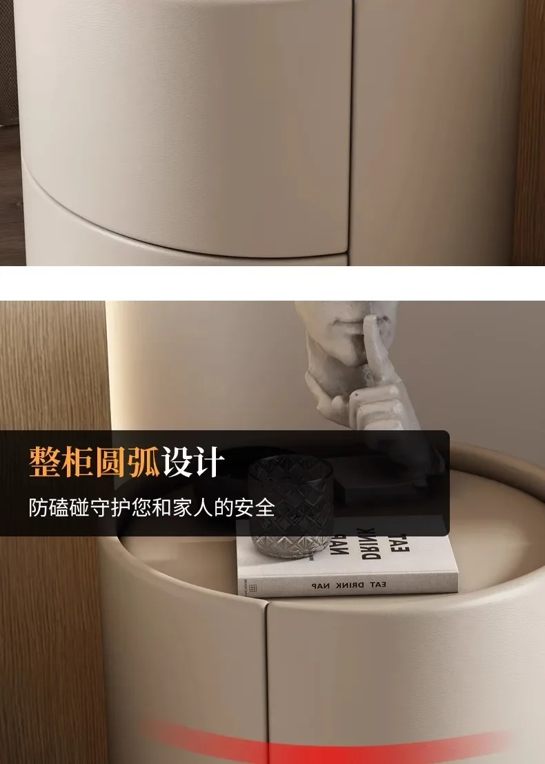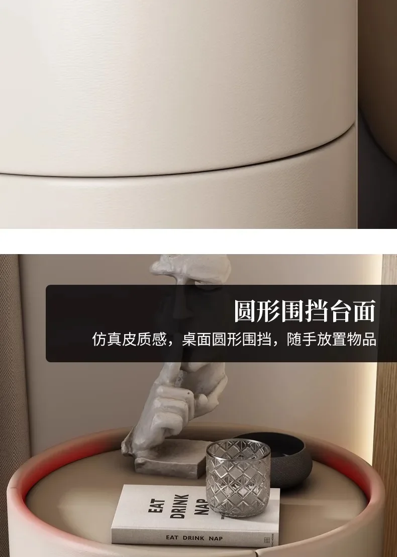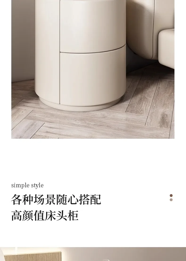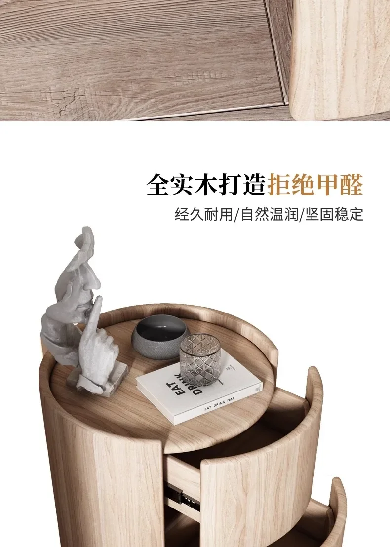 Modern Wooden Round Nightstand with 2 Drawers, 40x40x50cm