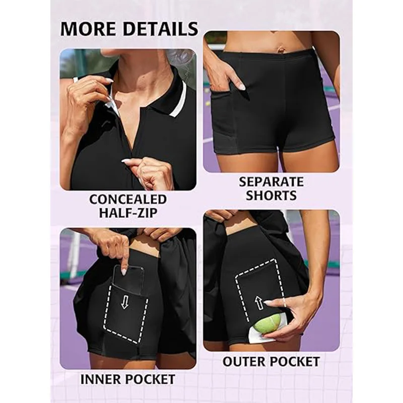 New zipper style tennis golf dress ladies summer sleeveless lapel polo shirt pleats dresses slim-fit thin sports tennis clothing